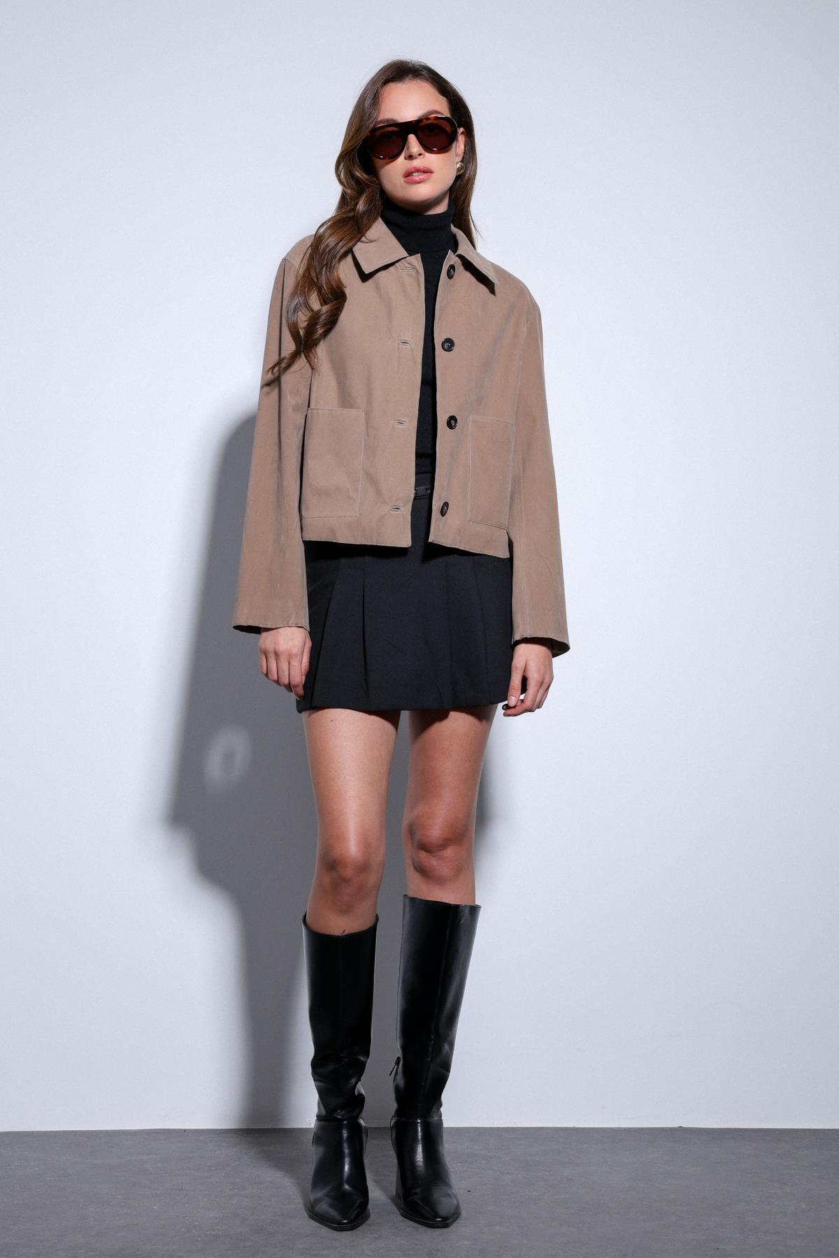 Vizon Torba Cepli Süet Kadın Ceket Vizon Torba Cepli Süet Kadın Ceket BA25Y427 L
