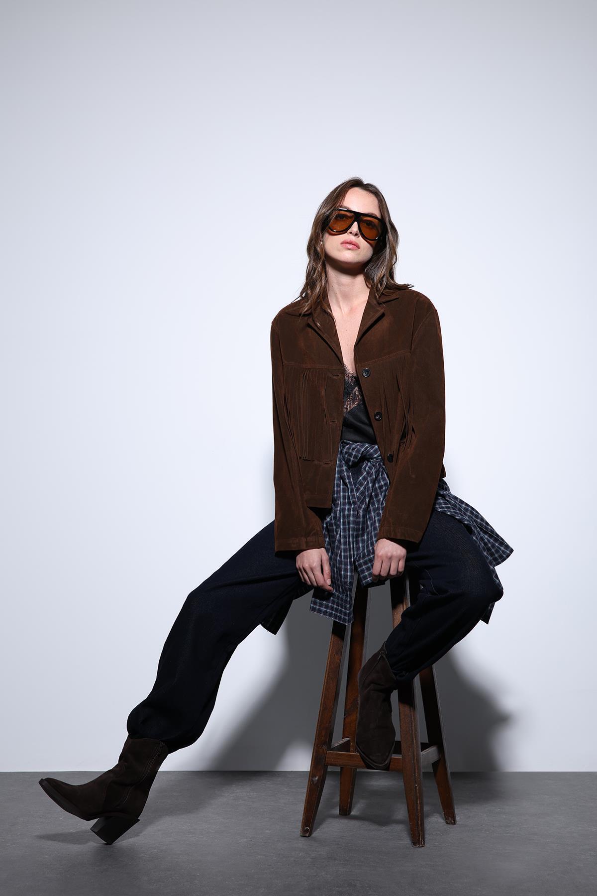 Kahve Püskül Detaylı Süet Kadın Ceket Kahve Püskül Detaylı Süet Kadın Ceket BA25Y425 L