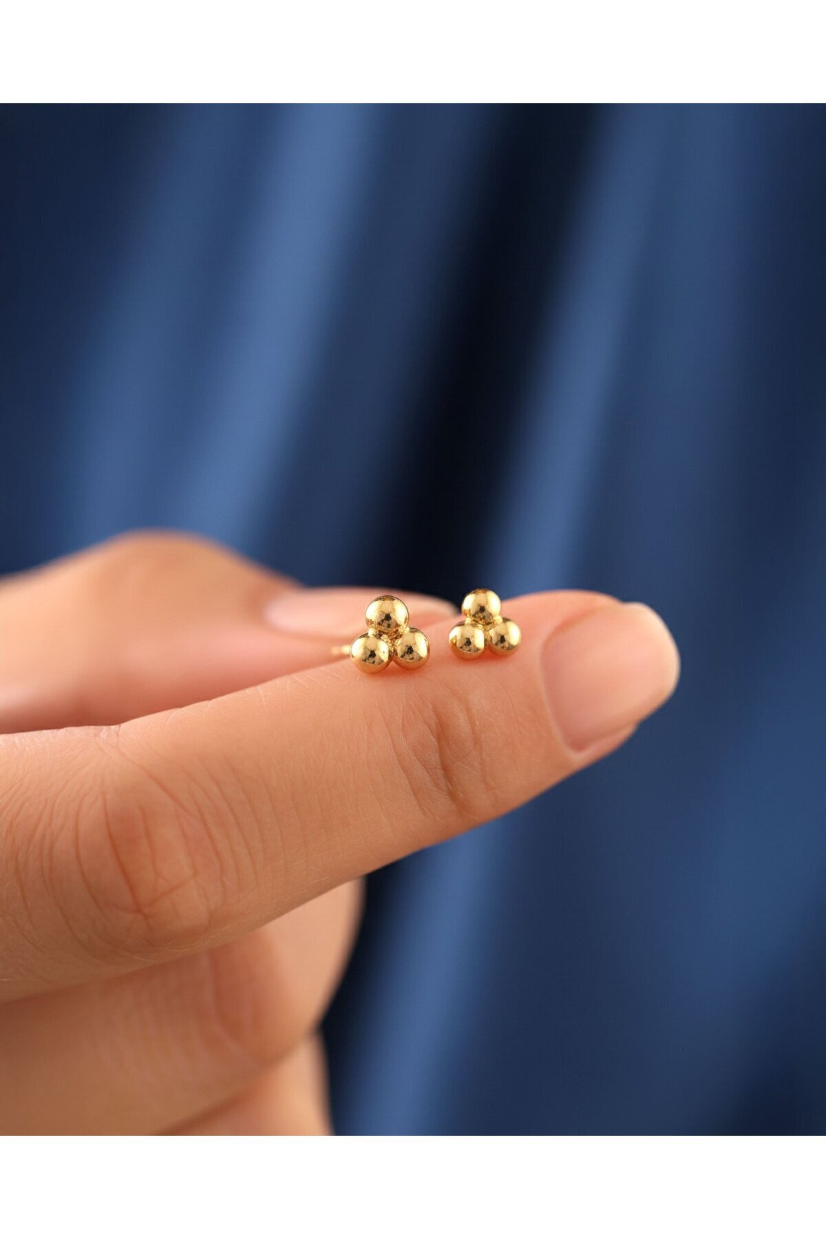 Sade Üçlü Tohum 14 Ayar Altın Küpe Sade Üçlü Tohum 14 Ayar Altın Küpe KPA8 تک سایز