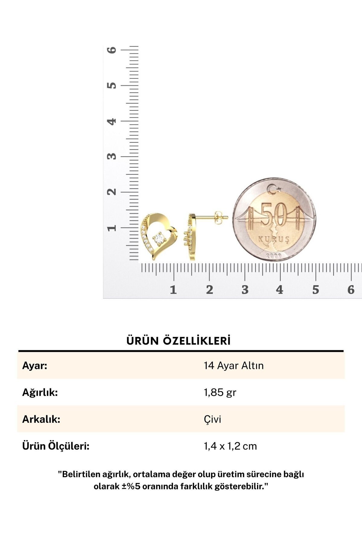 Kalp Parıltısı Tektaş 14 Ayar Altın Küpe Kalp Parıltısı Tektaş 14 Ayar Altın Küpe KPA14 تک سایز