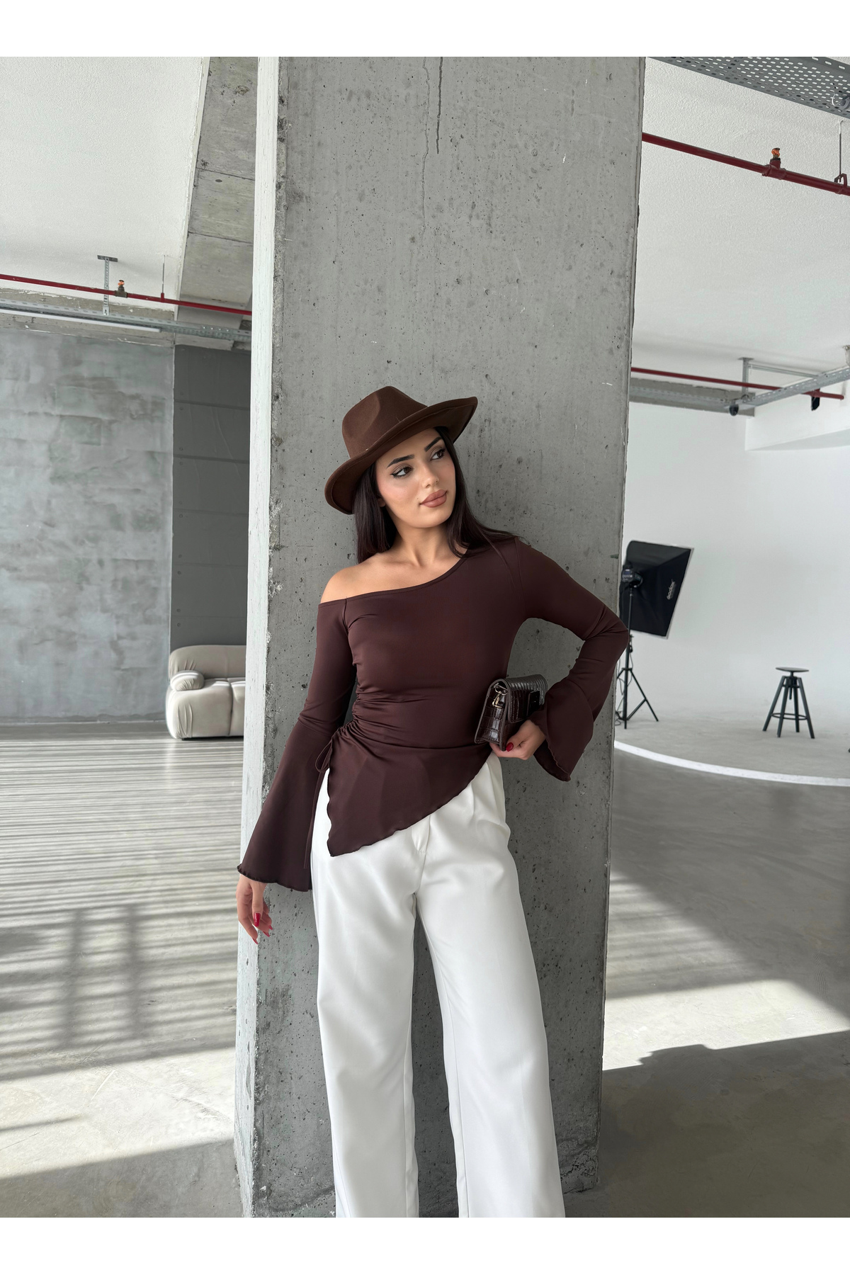 ÇAPRAZ KESİM ASANSÖRLÜ İSPANYOL KOL BLUZ ÇAPRAZ KESİM ASANSÖRLÜ İSPANYOL KOL BLUZ EY10040 L