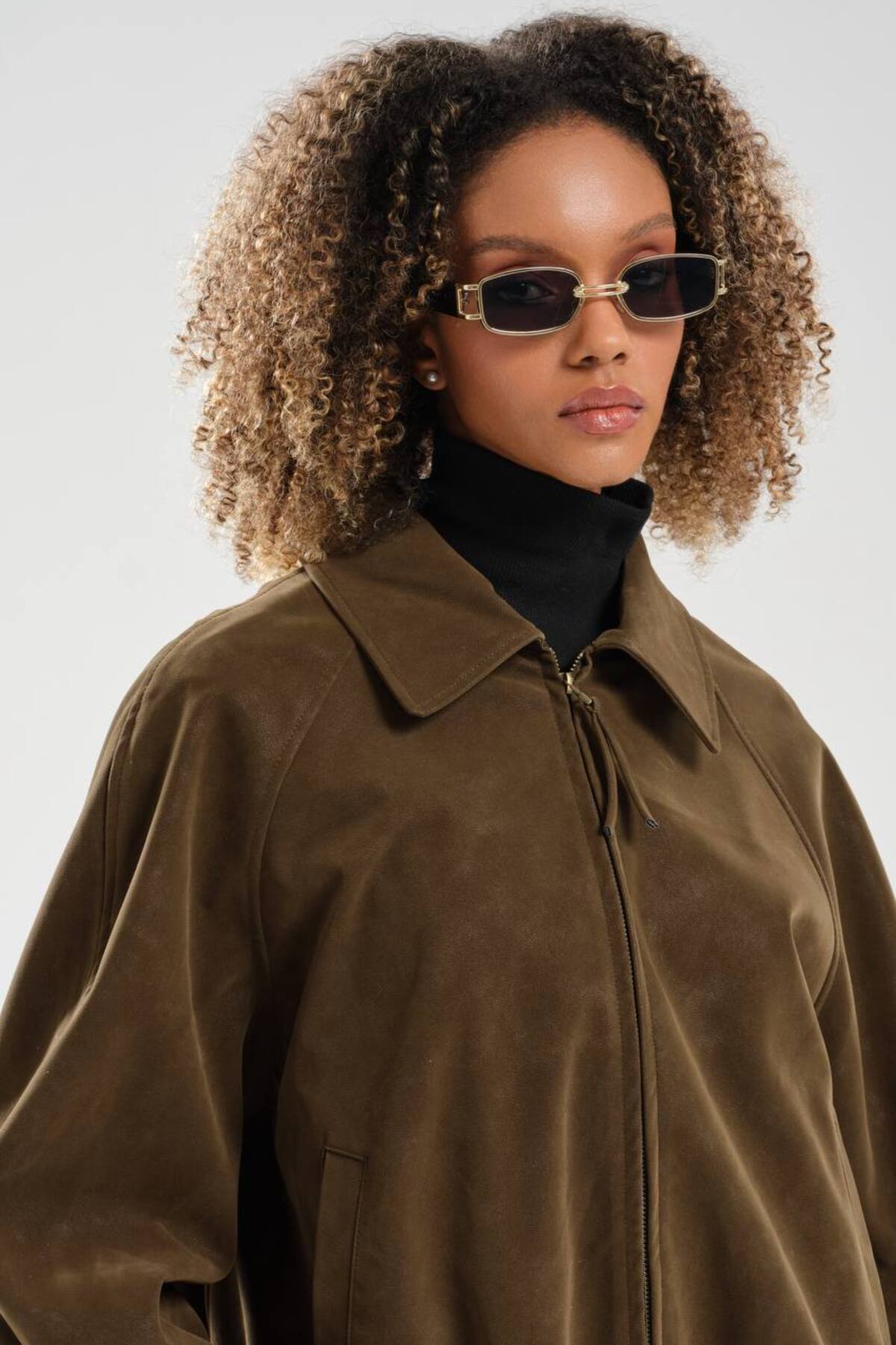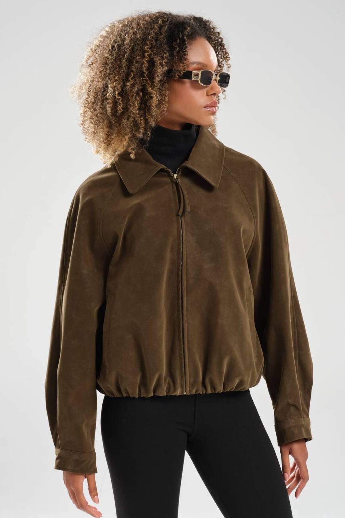 Kadın Süet Deri Etek Ucu Balon Tasarım Ceket Kadın Süet Deri Etek Ucu Balon Tasarım Ceket TW3-21095 L