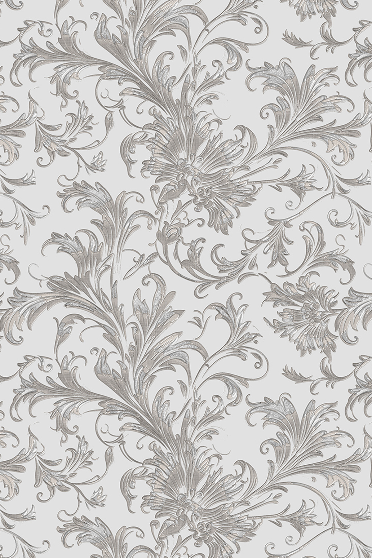 Gümüş Beyaz Barok Çiçek Desenli Modern Klasik Tarz Tekstil Duvar Kağıdı Gümüş Beyaz Barok Çiçek Desenli Modern Klasik Tarz Tekstil Duvar Kağıdı DW2025-337 450 x 240