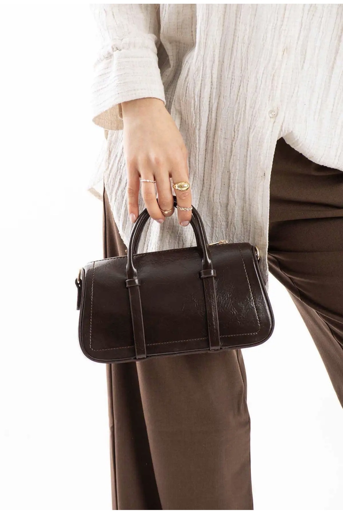 Kahverengi Deri Baget Kadın El Ve Omuz Çanta Kahverengi Deri Baget Kadın El Ve Omuz Çanta Vina Standart