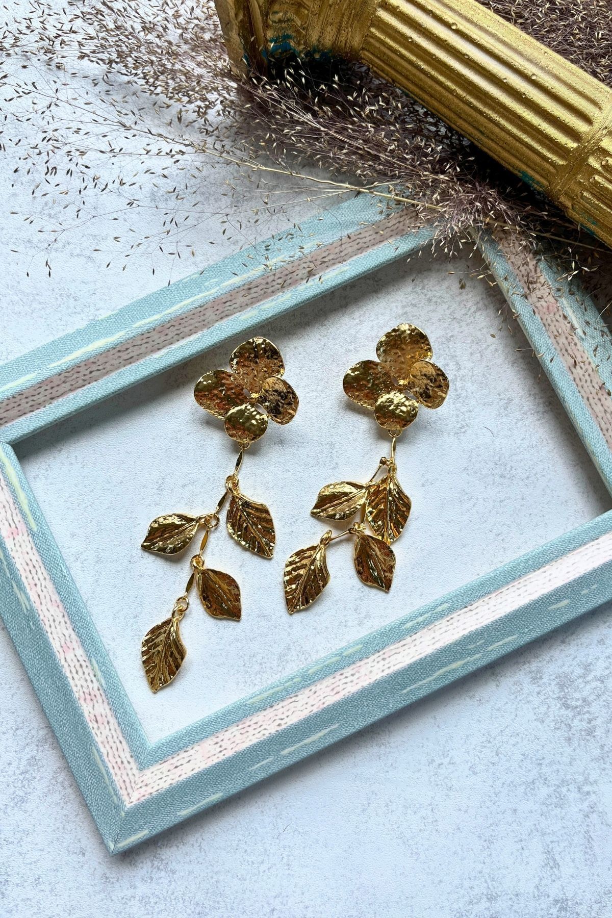 Altın Renkli Yaprak Küpe Altın Renkli Yaprak Küpe ARYK تک سایز