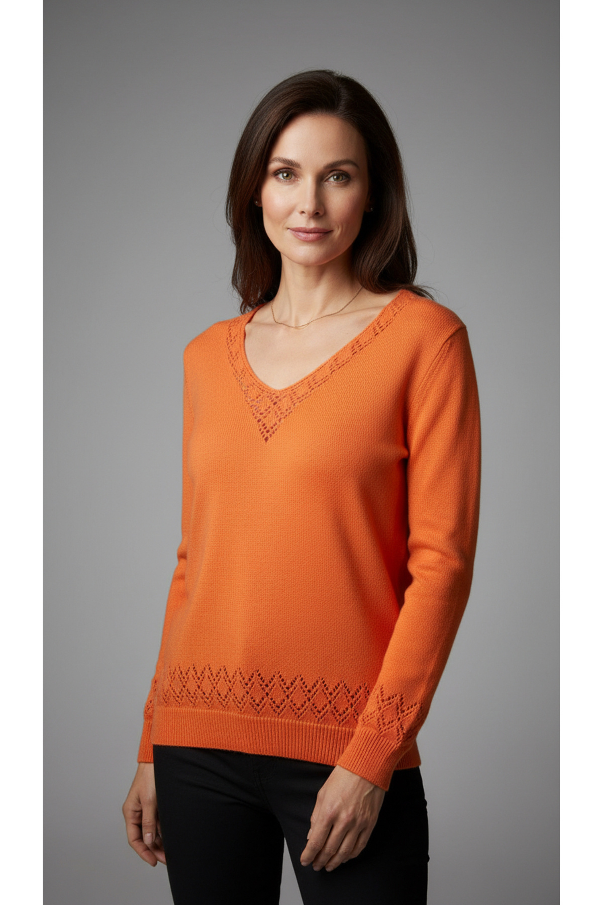 Turuncu Örme File Detaylı Triko Kazak Turuncu Örme File Detaylı Triko Kazak 11 M