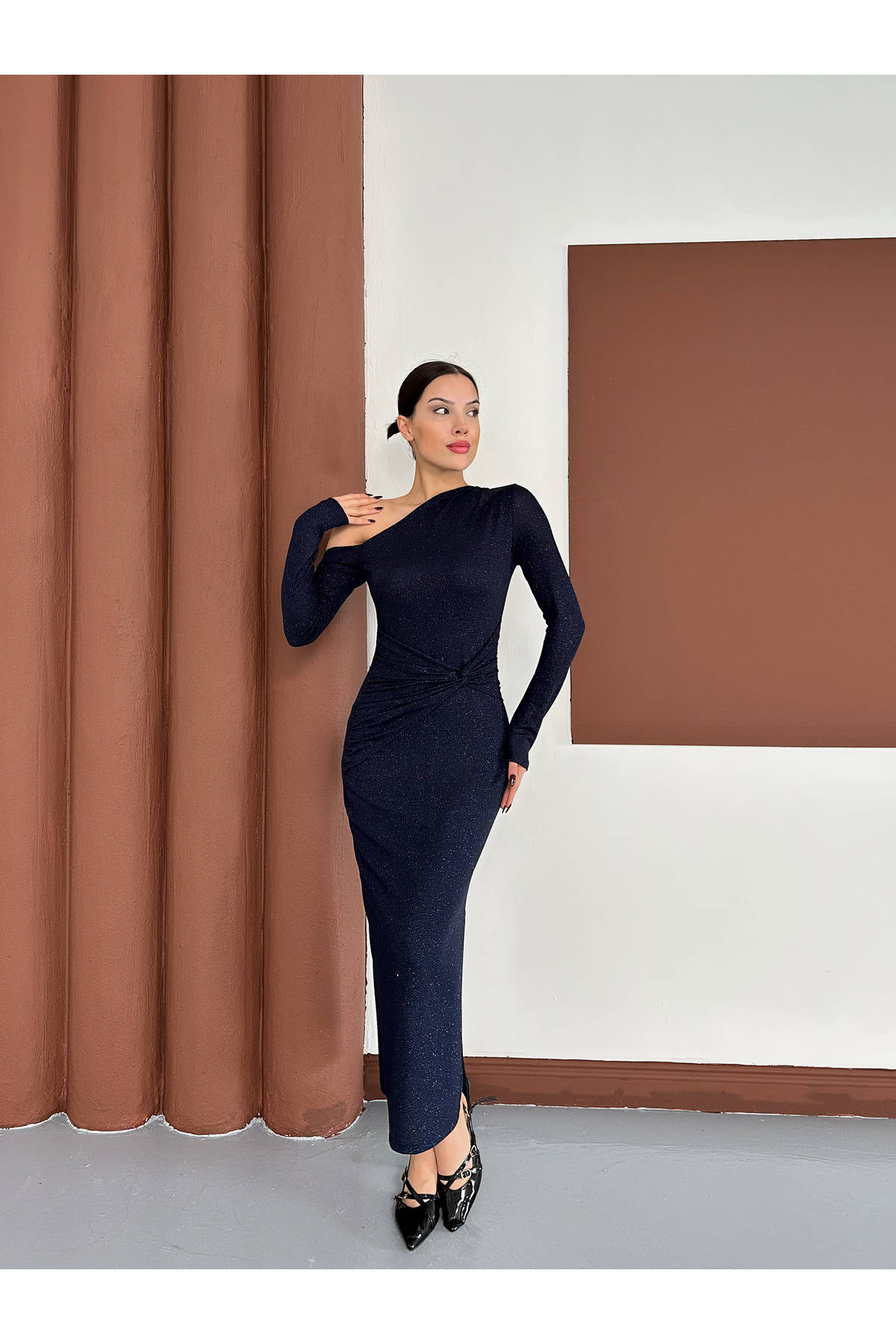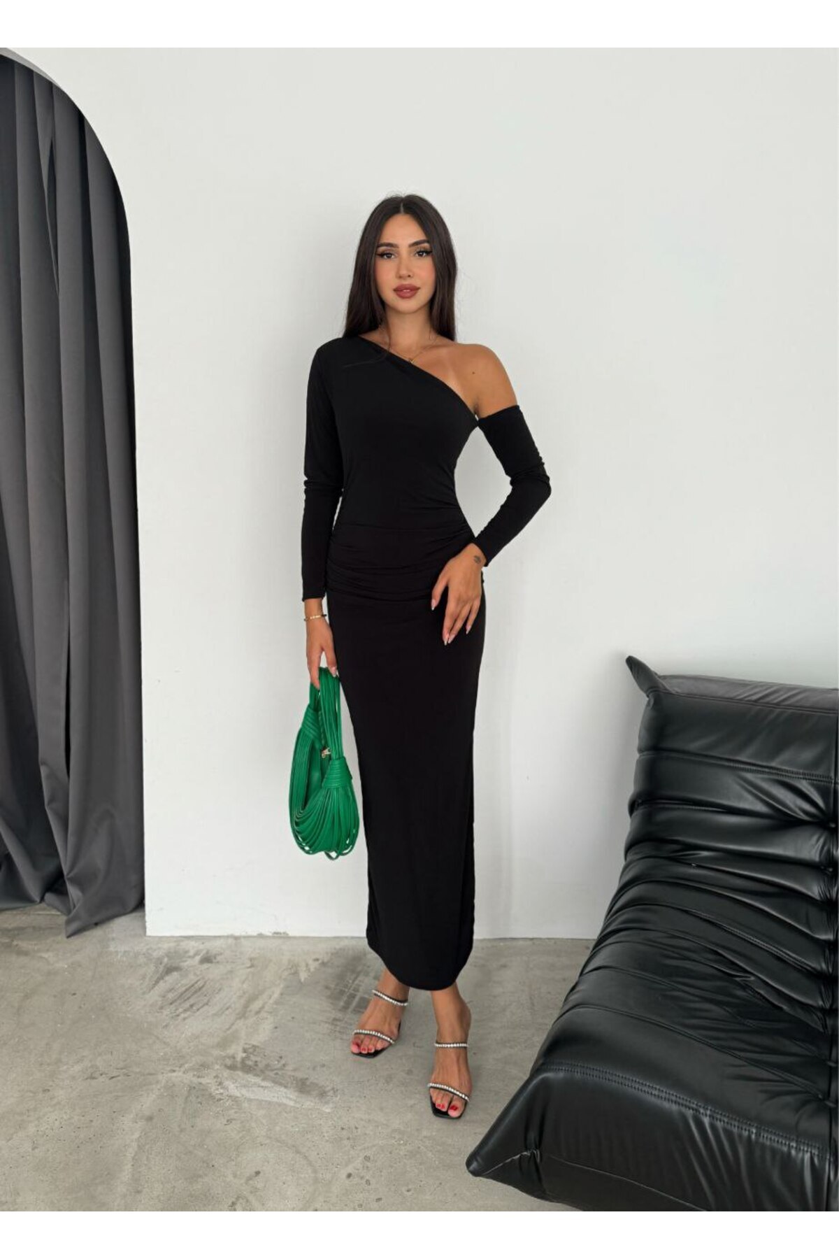 Kadın Simli Tek Omuz Uzun Elbise Kadın Simli Tek Omuz Uzun Elbise OTK-simlielbise L