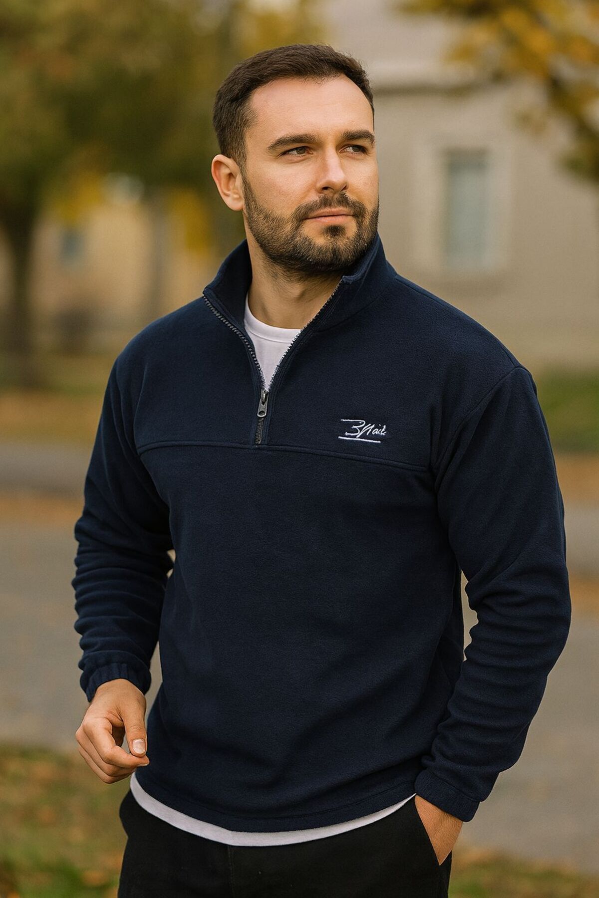 Erkek Yarım Fermuar Parça Detay Nakışlı Polar Sweatshirt Erkek Yarım Fermuar Parça Detay Nakışlı Polar Sweatshirt CPS XL