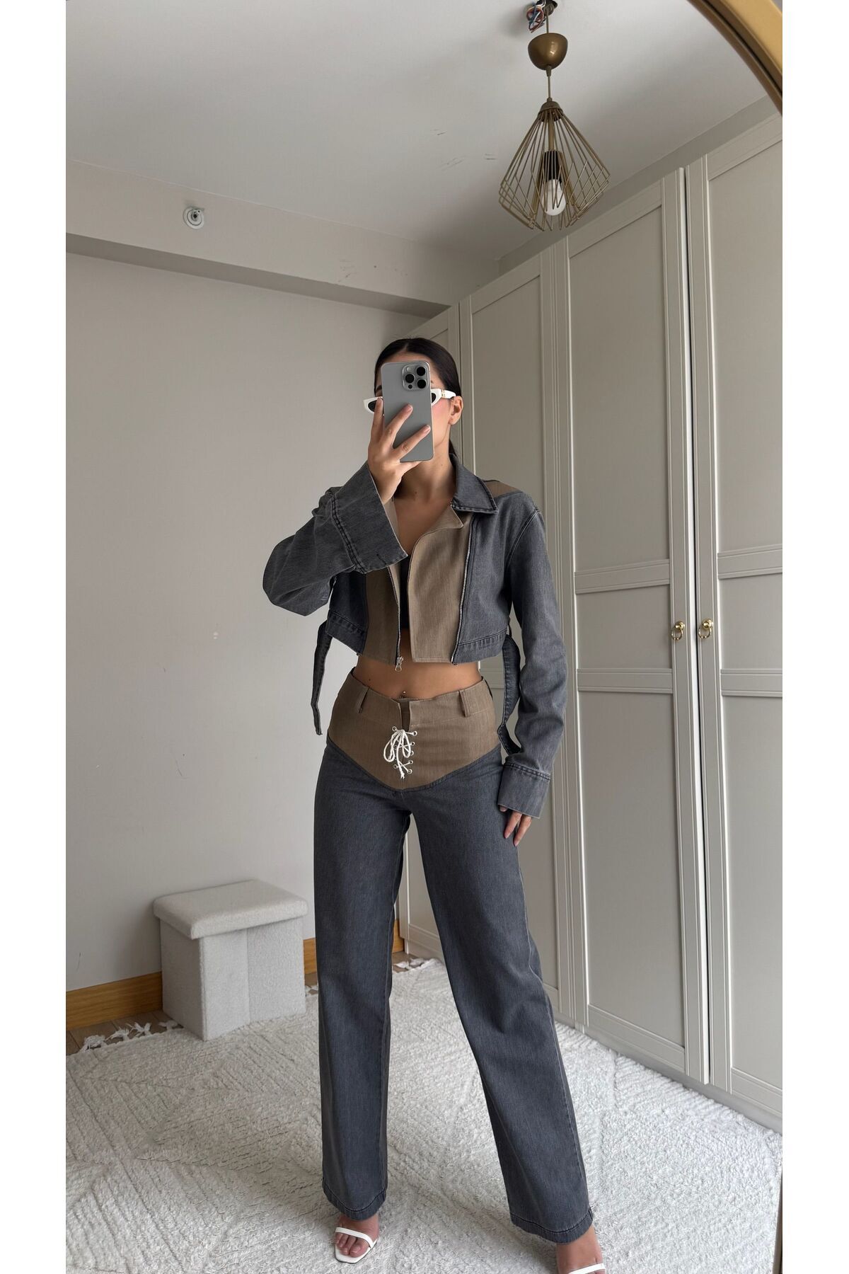 Bomber Ceketli Desenli Denim Takım Bomber Ceketli Desenli Denim Takım SK-13526 L