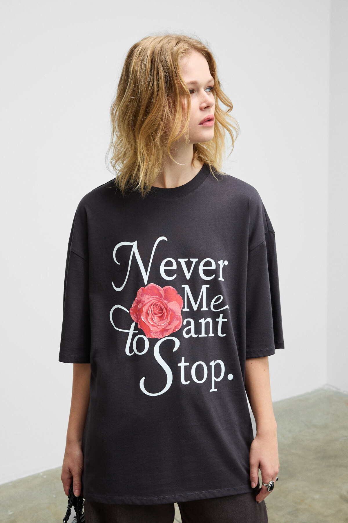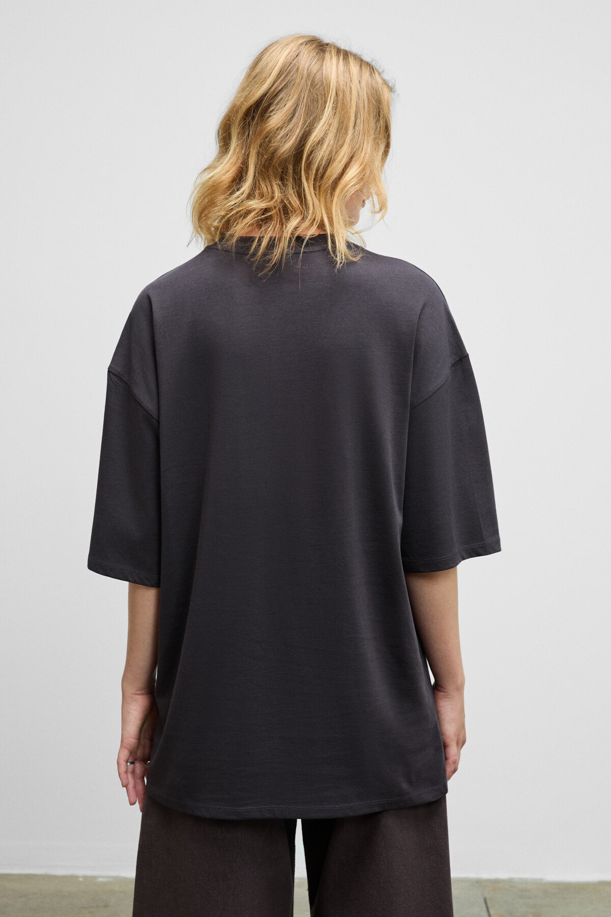 MOKILA Kadın Yumuşak Ve Esnek Kumaşlı Baskı Detaylı Bisiklet Yakalı Antrasit T-Shirt MOKILA Kadın Yumuşak Ve Esnek Kumaşlı Baskı Detaylı Bisiklet Yakalı Antrasit T-Shirt MOKILA01082025 XL