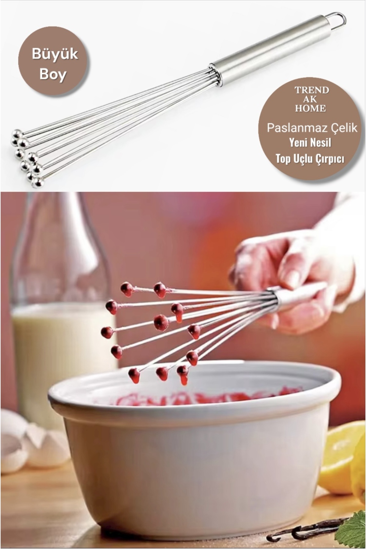 - Diğer Özellikler : Bu özellikler sayesinde top uçlu çırpıcı, özellikle soslar, çırpılmış yumurtalar, marinatlar ve daha hafif hamurlar gibi pek çok tarif için mutfakta pratik ve etkili bir araç haline gelmiştir.