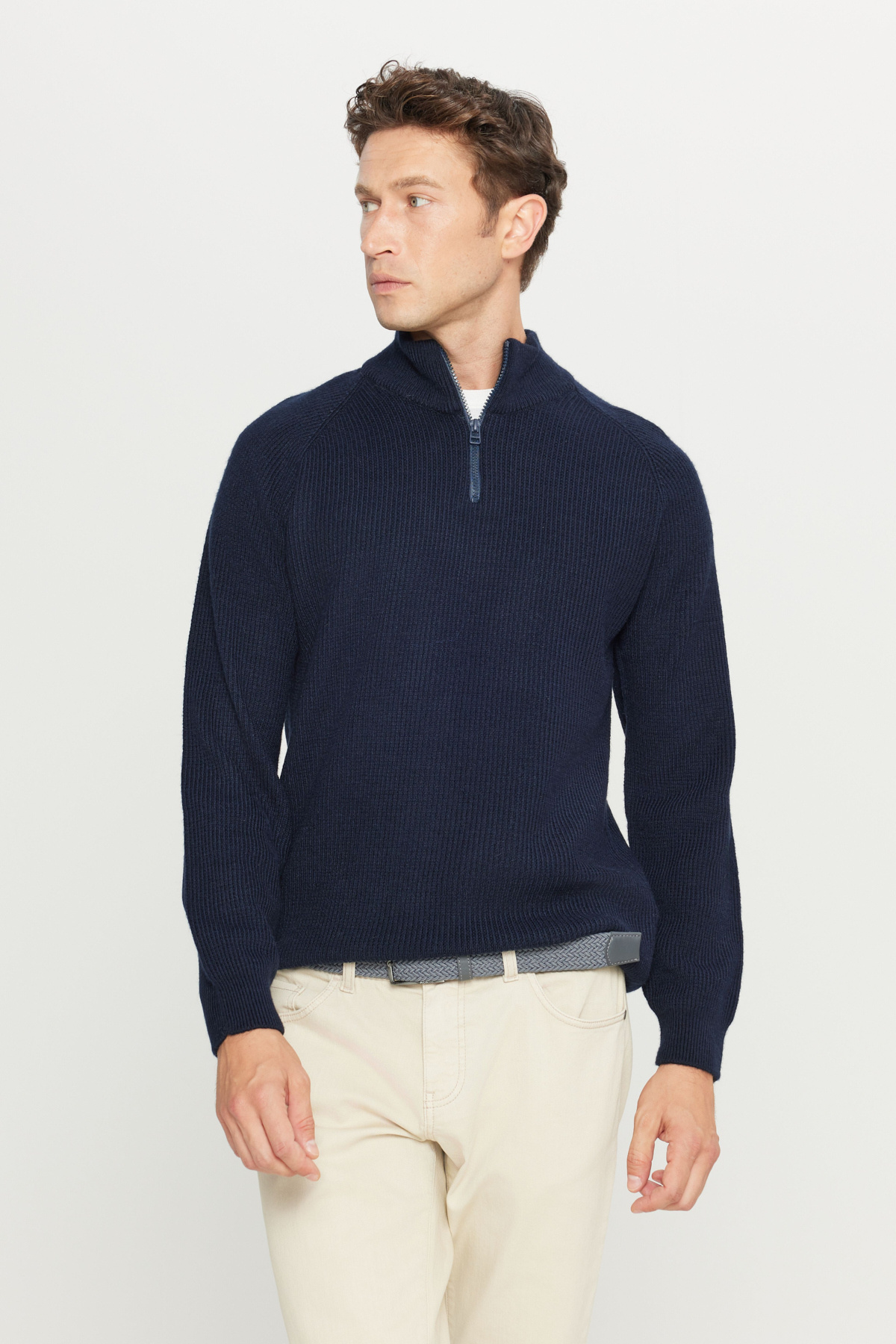 Erkek Lacivert Standart Fit Normal Kesim Fermuarlı Bato Yaka Triko Kazak Erkek Lacivert Standart Fit Normal Kesim Fermuarlı Bato Yaka Triko Kazak ETE049261495 3XL
