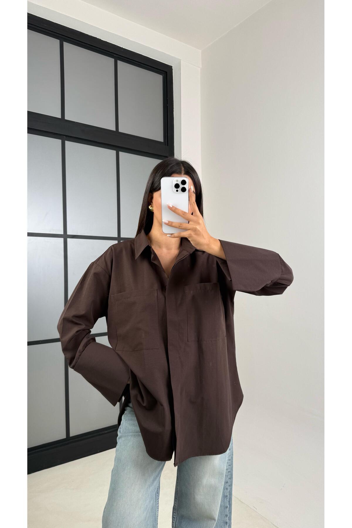 Acı Kahve Gizli Düğmeli Kol Katlamalı Poplin Gömlek GAUS-00449 Acı Kahve Gizli Düğmeli Kol Katlamalı Poplin Gömlek GAUS-00449 L