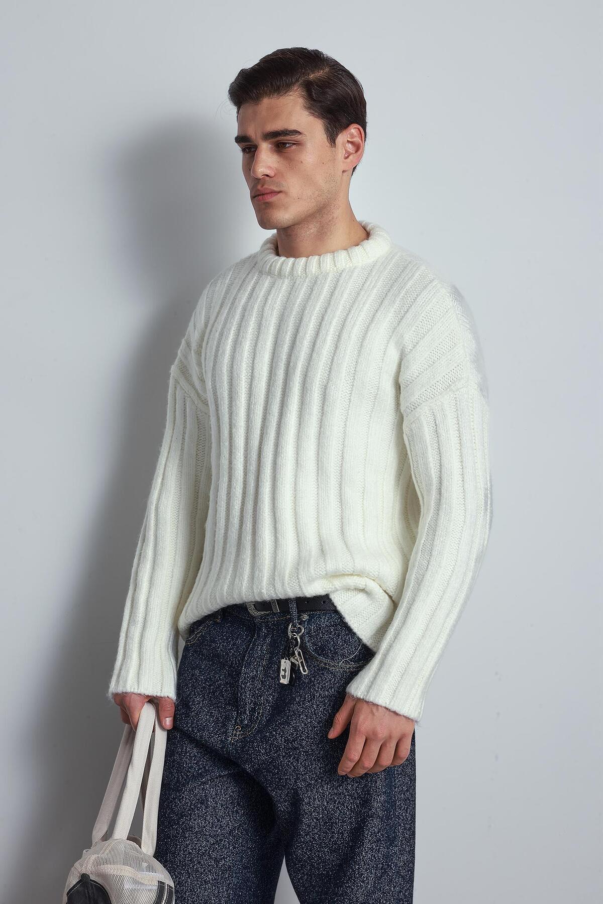Erkek Oversize Kalın Fitilli Triko Kazak Ekru Erkek Oversize Kalın Fitilli Triko Kazak Ekru KZK.0088 XL