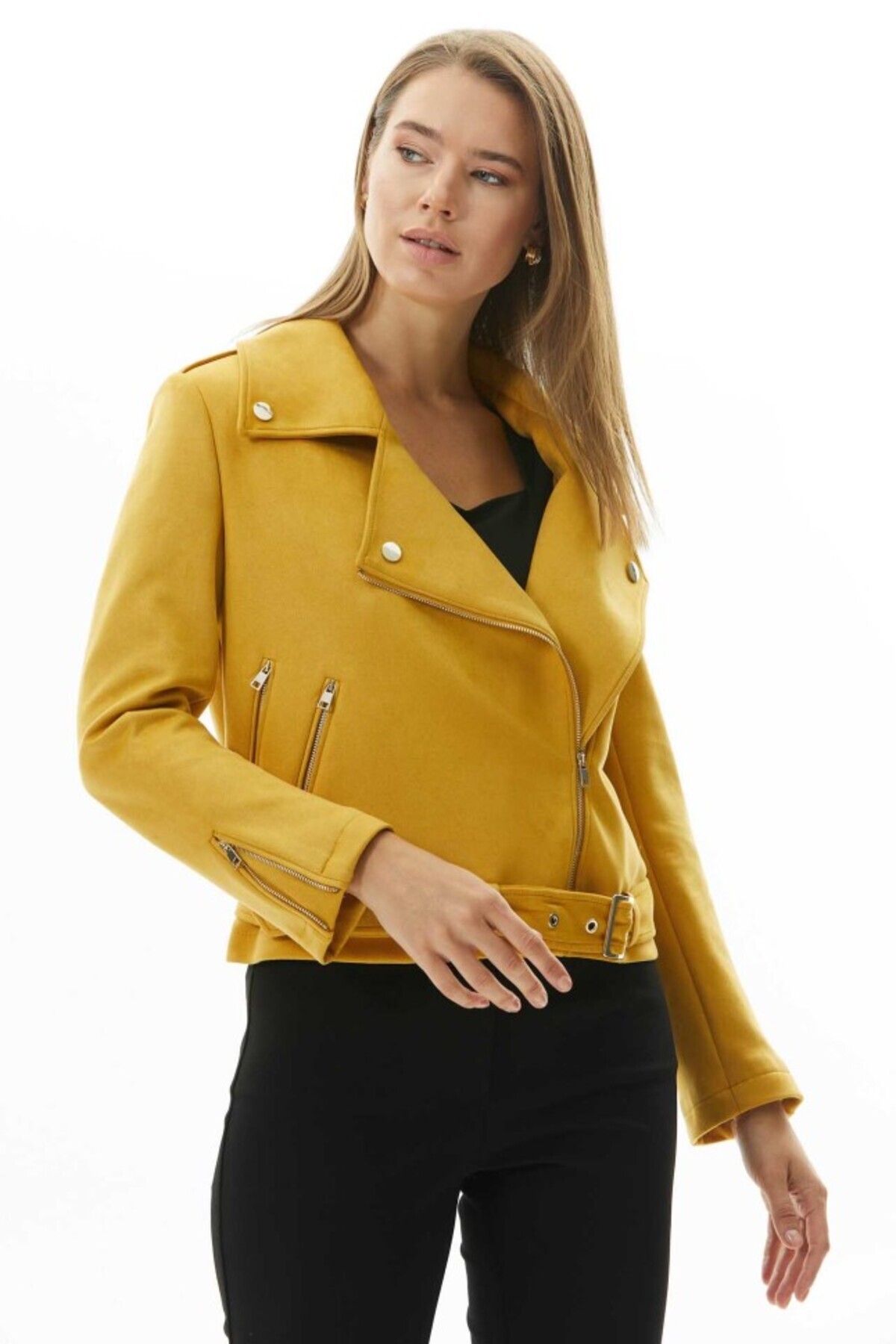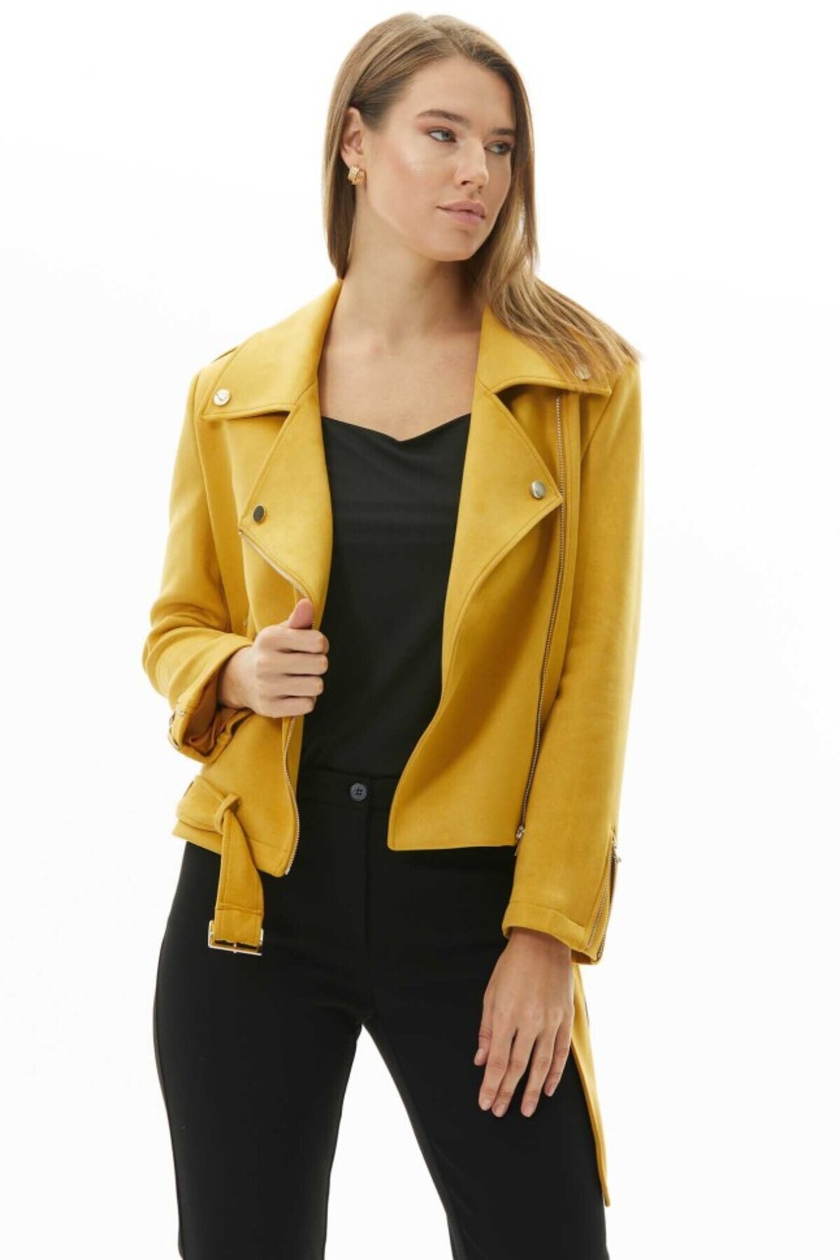 Kruvaze Fermuarlı Kemerli Süet Ceket Kruvaze Fermuarlı Kemerli Süet Ceket 23KSL1261 44