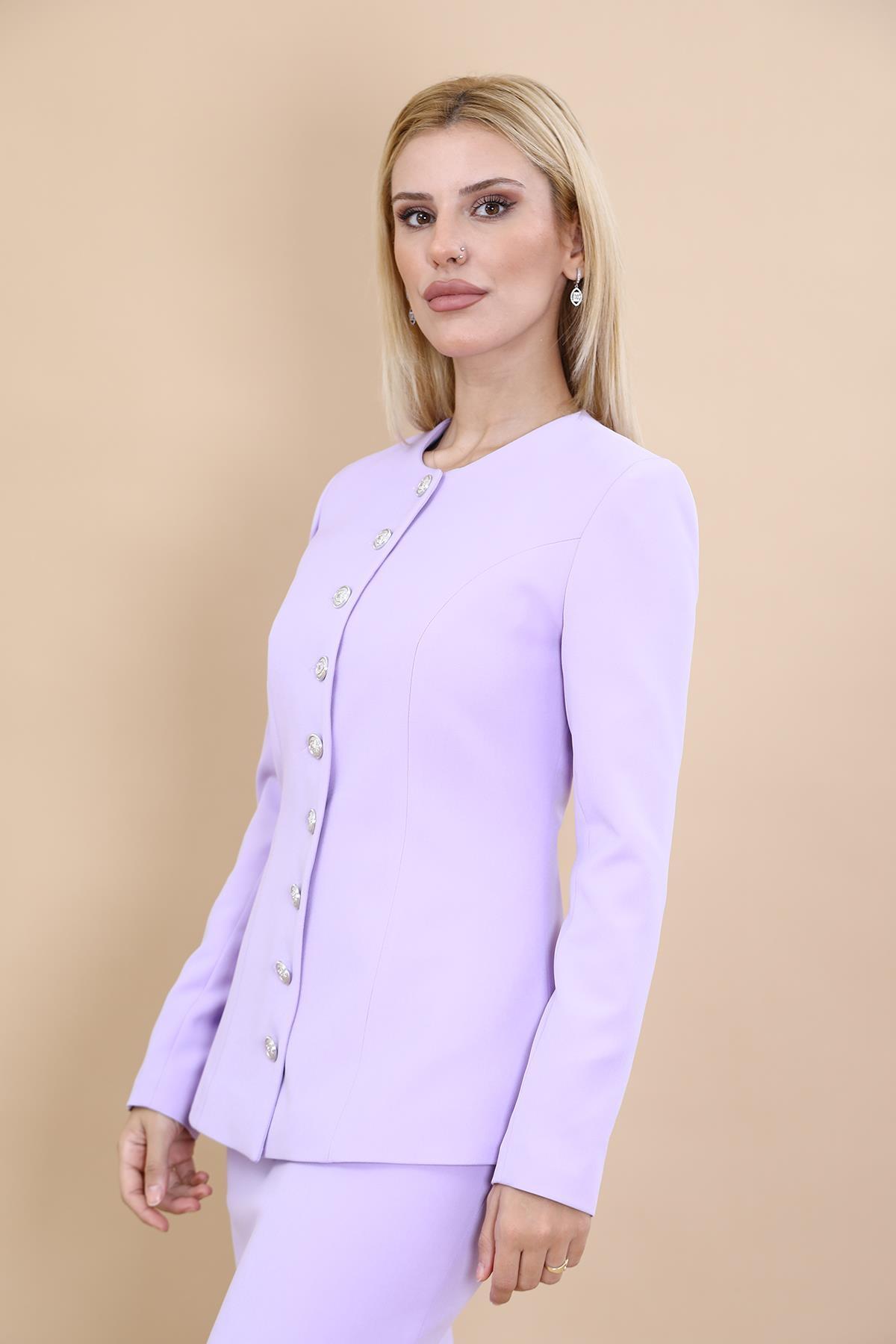 Sıfır Yaka Boydan Düğmeli Ceket-Menekşe Sıfır Yaka Boydan Düğmeli Ceket-Menekşe 1064100