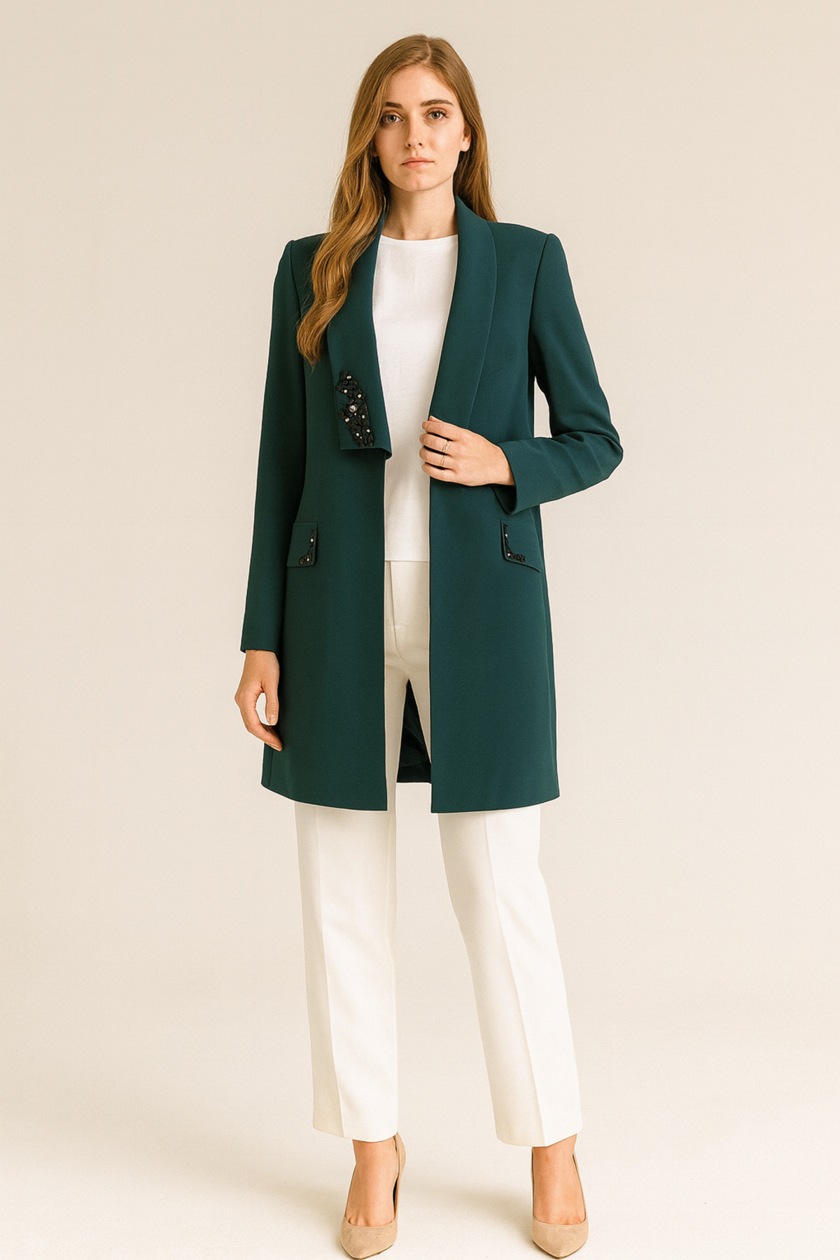 Şal Yaka Uzun Ceket-Zümrüt Şal Yaka Uzun Ceket-Zümrüt 1001100 44