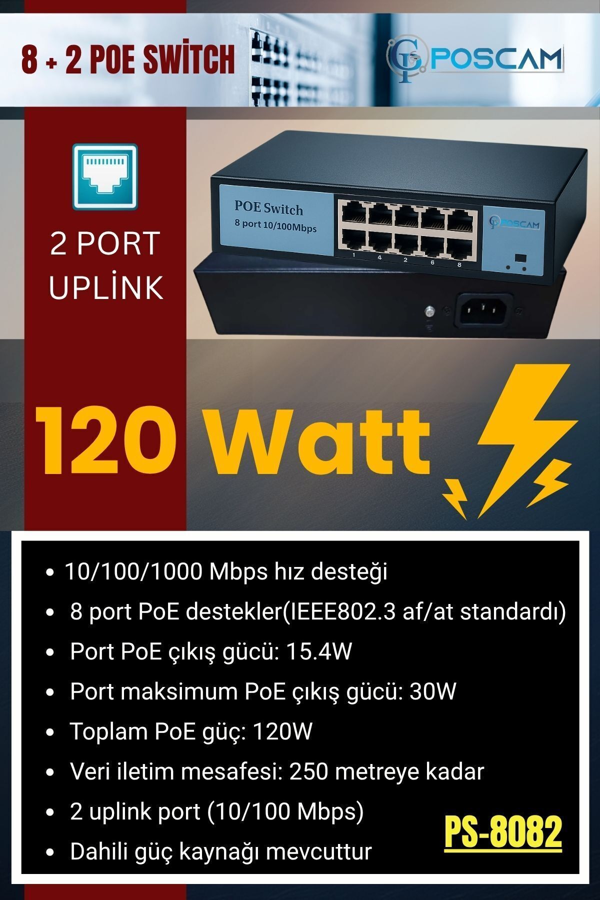 8 Port 10/100 +2 Gigabit Uplink +1 Sfp Poe Switch 8 Port 10/100 +2 Gigabit Uplink +1 Sfp Poe Switch 82G1SP تک سایز
