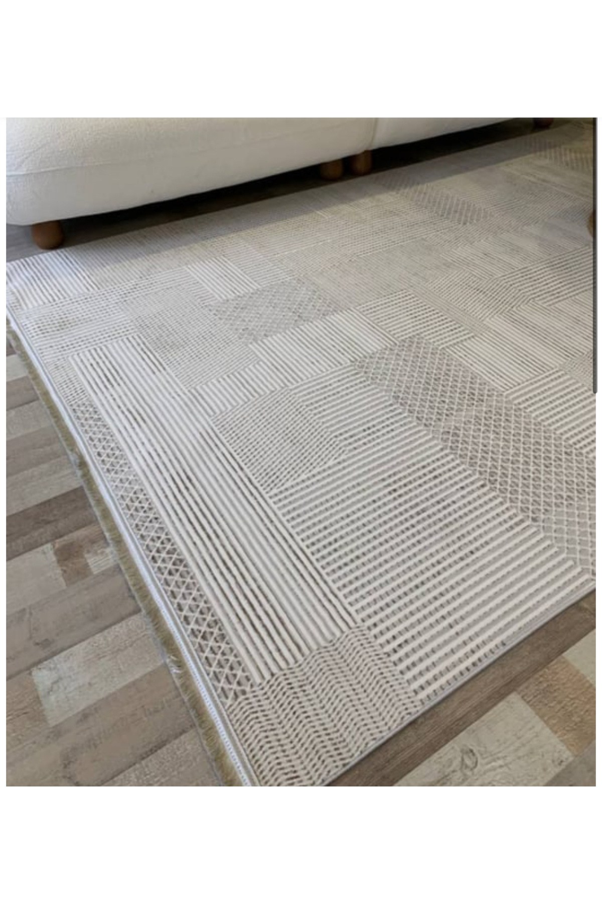 Modern Kare Desenli Düz Saçaklı Akrilik – Bambu Yıkanabilir Halı Modern Kare Desenli Düz Saçaklı Akrilik – Bambu Yıkanabilir Halı SATH01 160 x 230
