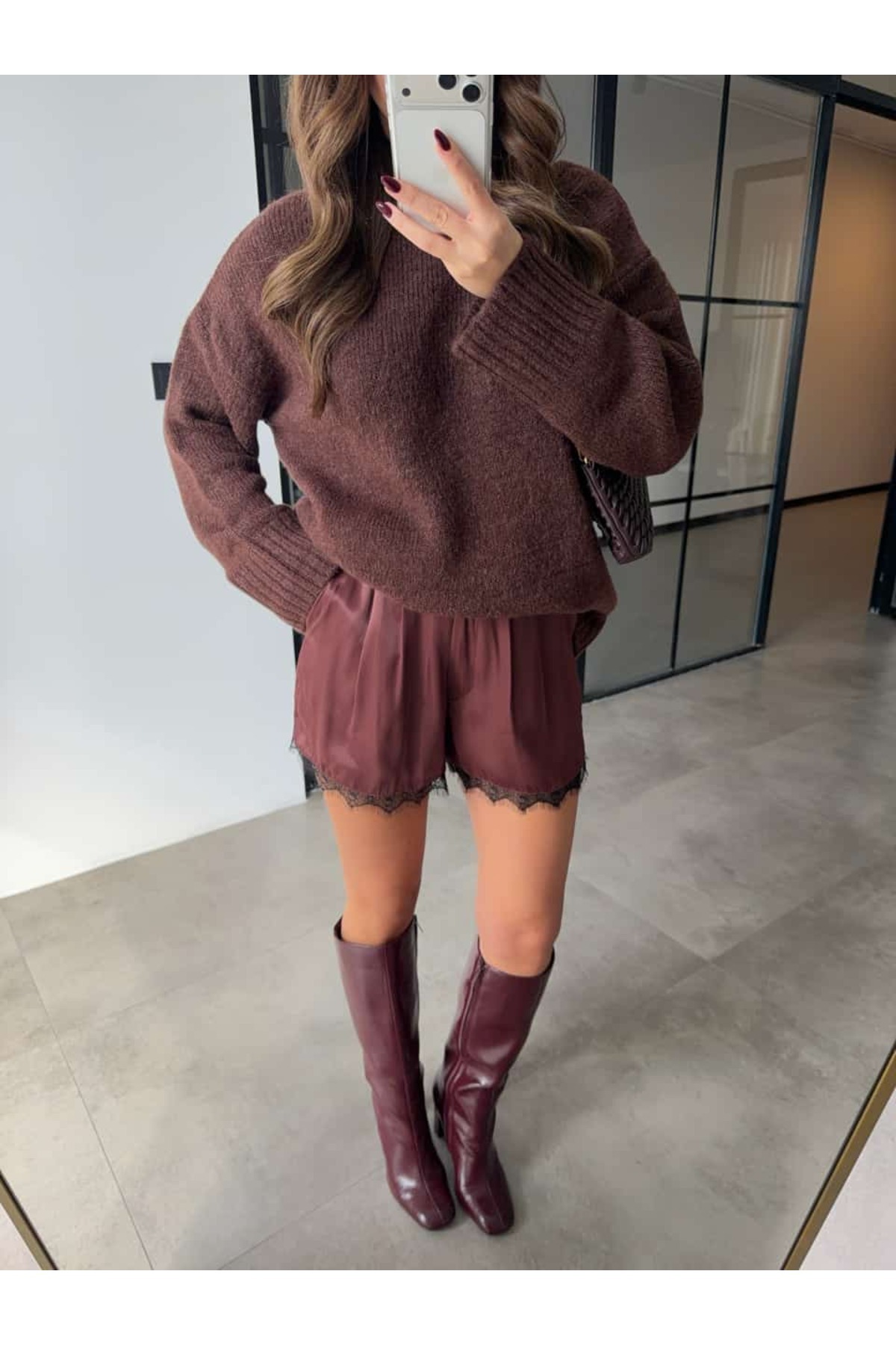 DANTEL DETAYLI KAHVERENGİ SATEN ŞORT DANTEL DETAYLI KAHVERENGİ SATEN ŞORT BB26QU1004K L