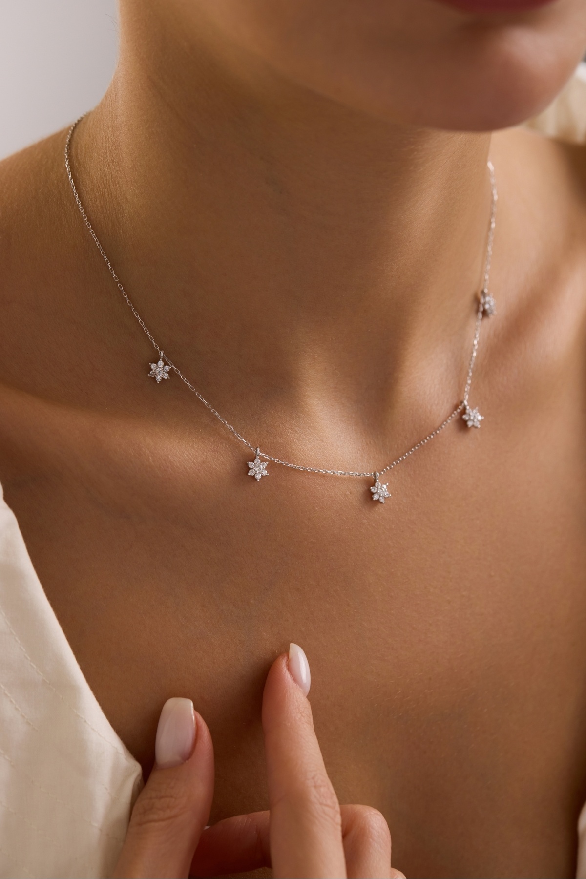 925 Ayar Gümüş Rodyum Kaplama Beyaz Taşlı Minimal Çiçek Şans Kolye 925 Ayar Gümüş Rodyum Kaplama Beyaz Taşlı Minimal Çiçek Şans Kolye NRZ1000585 تک سایز
