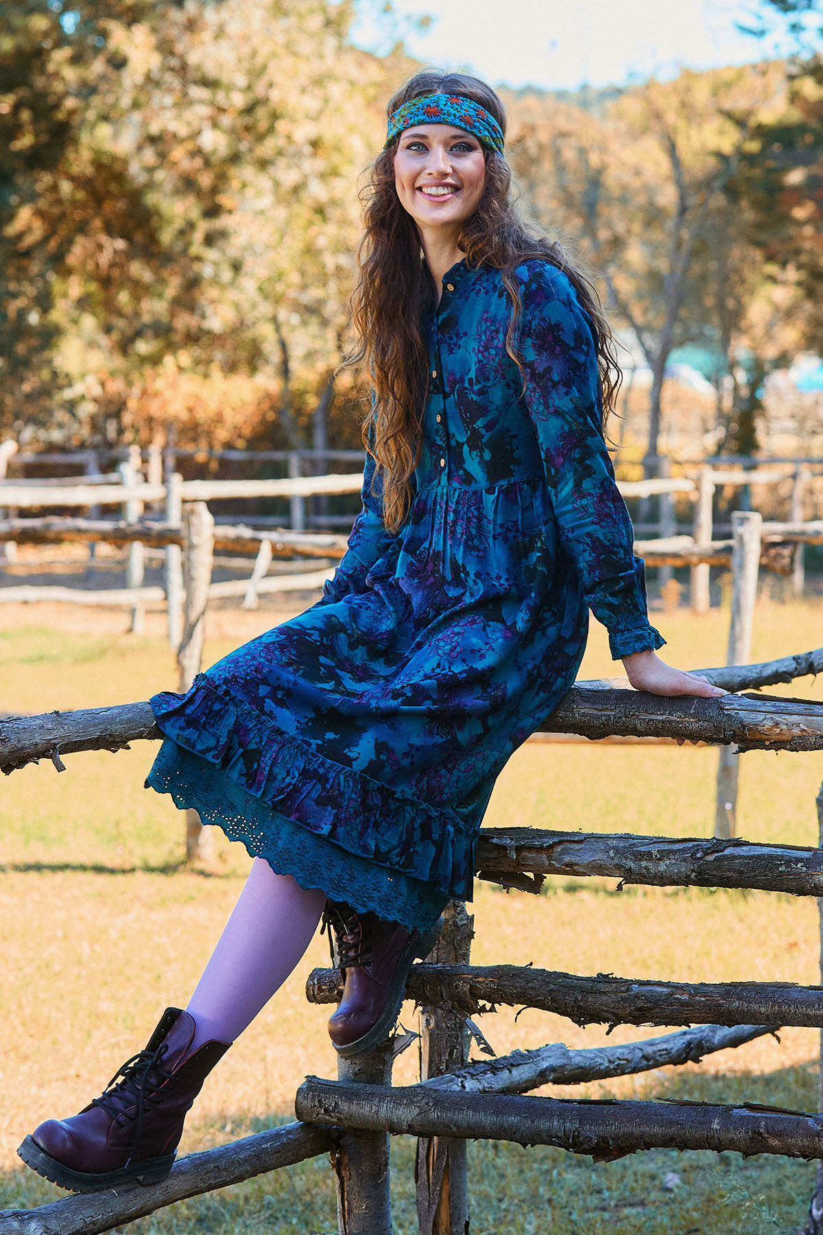 Düğme Detaylı Dantelli Uzun Kollu Elbise Düğme Detaylı Dantelli Uzun Kollu Elbise ULOS25WELBW.0006_1206 XL