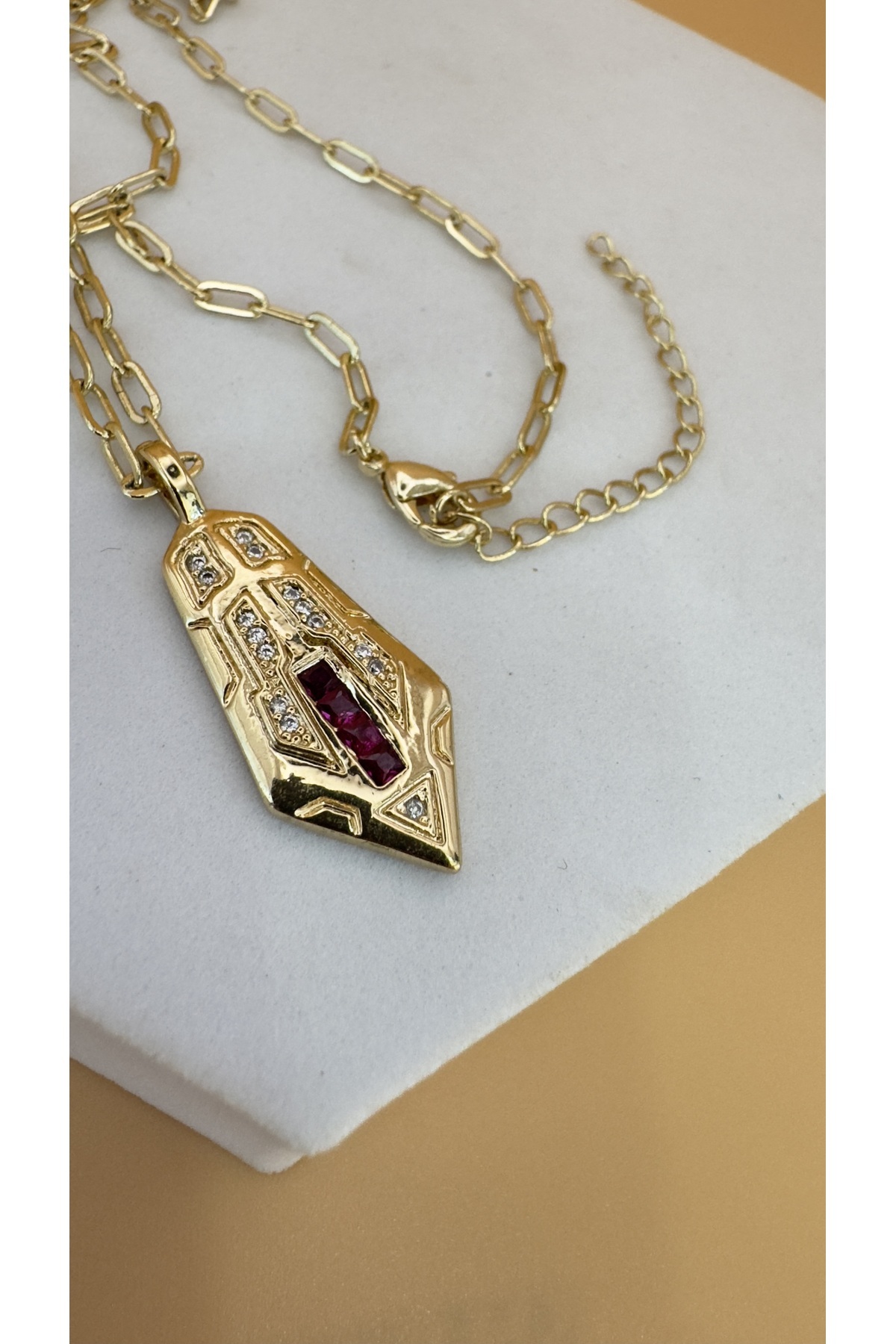 Kırmızı Taşlı Tasarım Ataç Zincir Vip Kolye Kırmızı Taşlı Tasarım Ataç Zincir Vip Kolye 1174 0