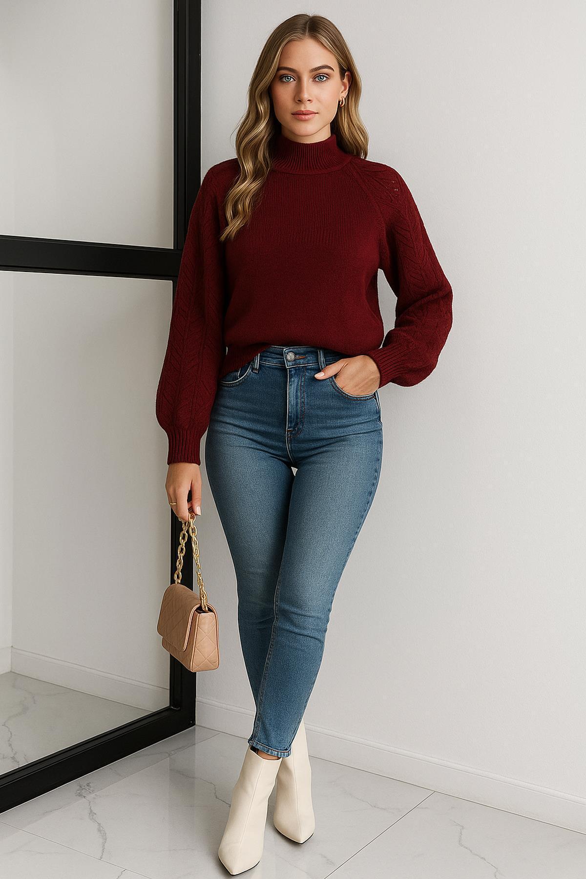 Bisiklet Yaka Çizgili Bej Kadın Kazak 25K0093K1 Bisiklet Yaka Çizgili Bej Kadın Kazak 25K0093K1 L