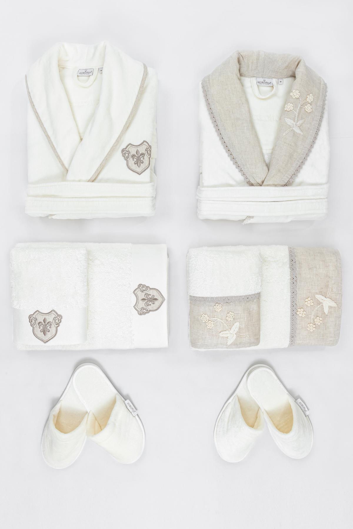 Zaira Aile Bornoz Seti %100 Organik Pamuk Nakışlı Pudra/Antrasit - M/L Zaira Aile Bornoz Seti %100 Organik Pamuk Nakışlı Pudra/Antrasit - M/L AILZAI-241-ML M/L
