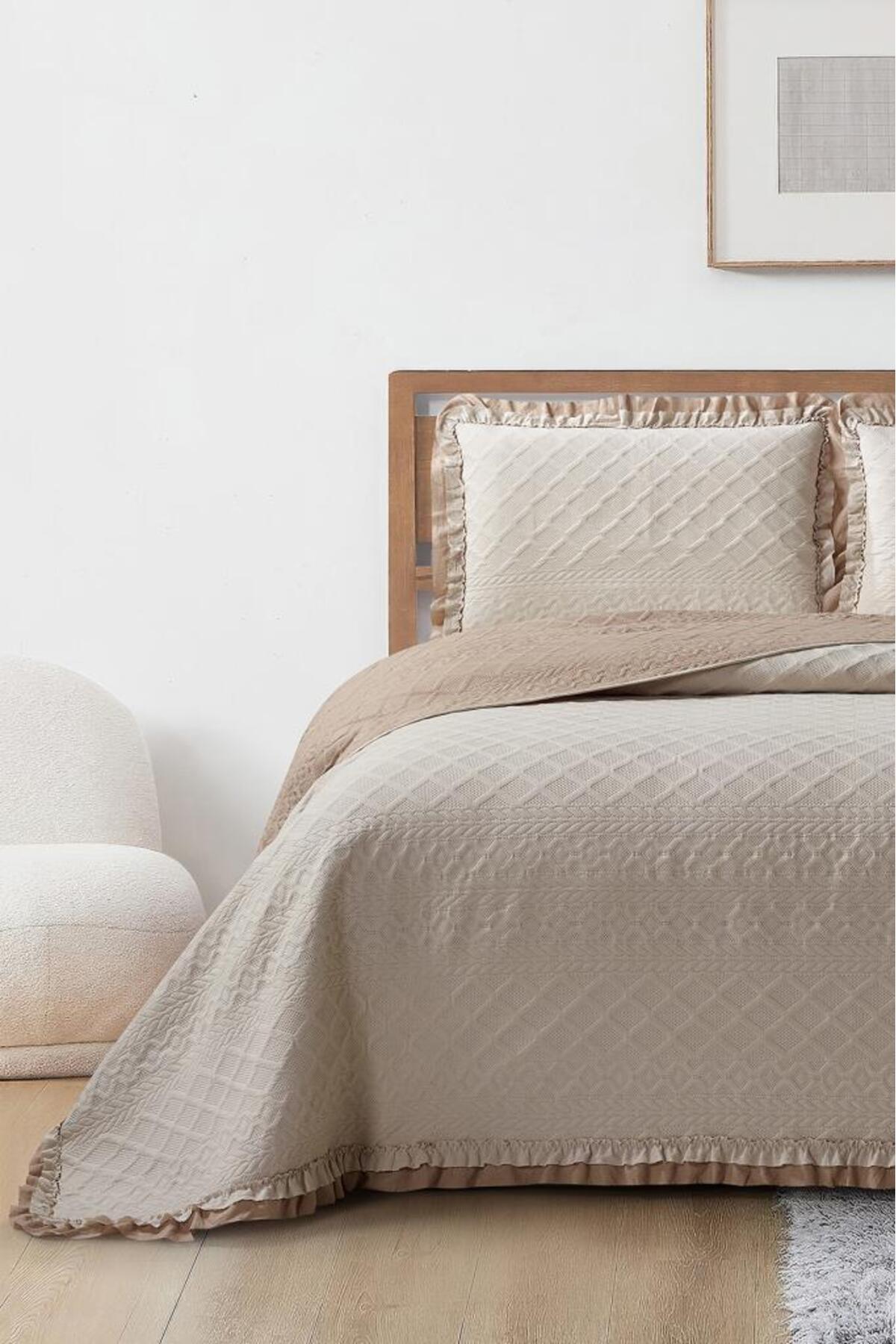 Dubai Elyaf Dolgulu Çift Kişilik 240x260 Cm Yatak Örtüsü Bej Dubai Elyaf Dolgulu Çift Kişilik 240x260 Cm Yatak Örtüsü Bej CD252448 تک سایز