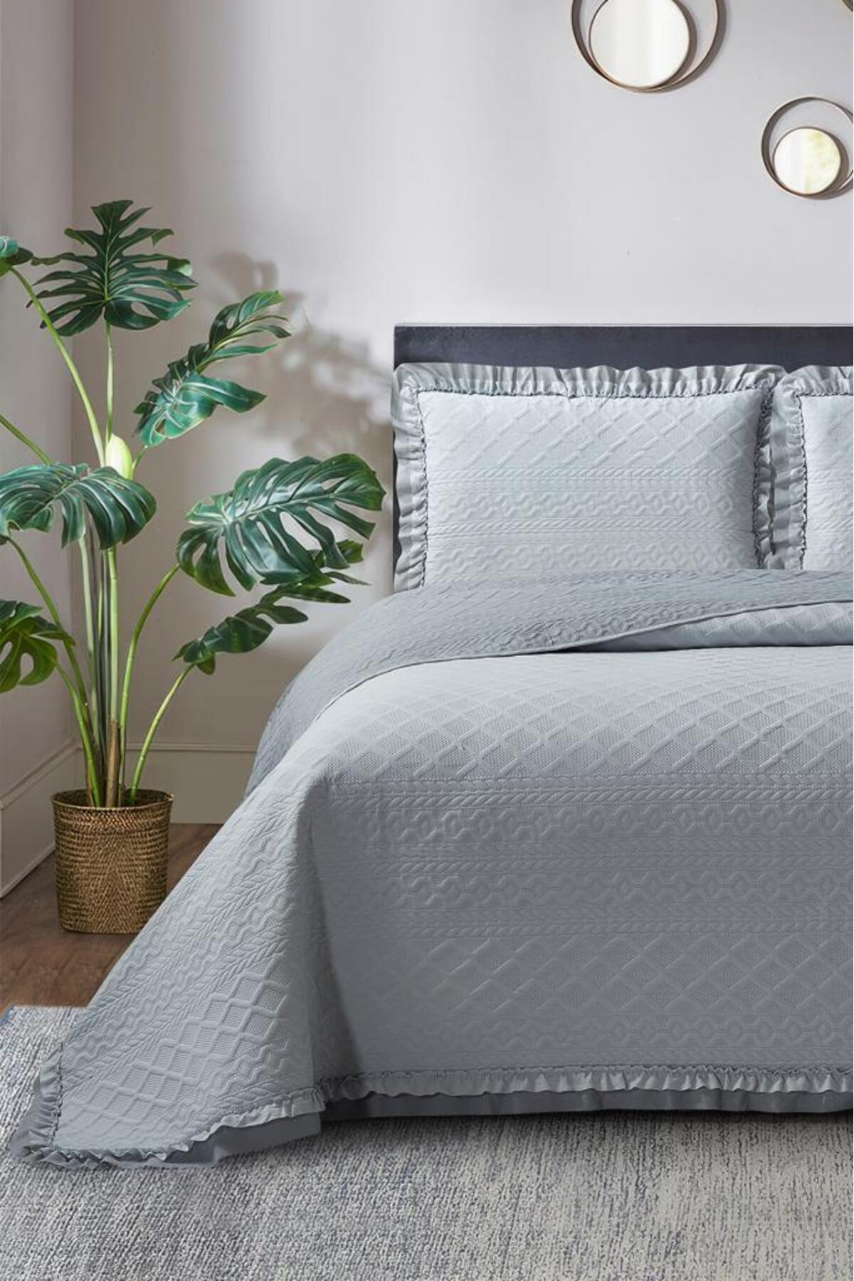 Roma Elyaf Dolgulu Çift Kişilik 240x260 Cm Yatak Örtüsü Antrasit Roma Elyaf Dolgulu Çift Kişilik 240x260 Cm Yatak Örtüsü Antrasit CD252428 تک سایز