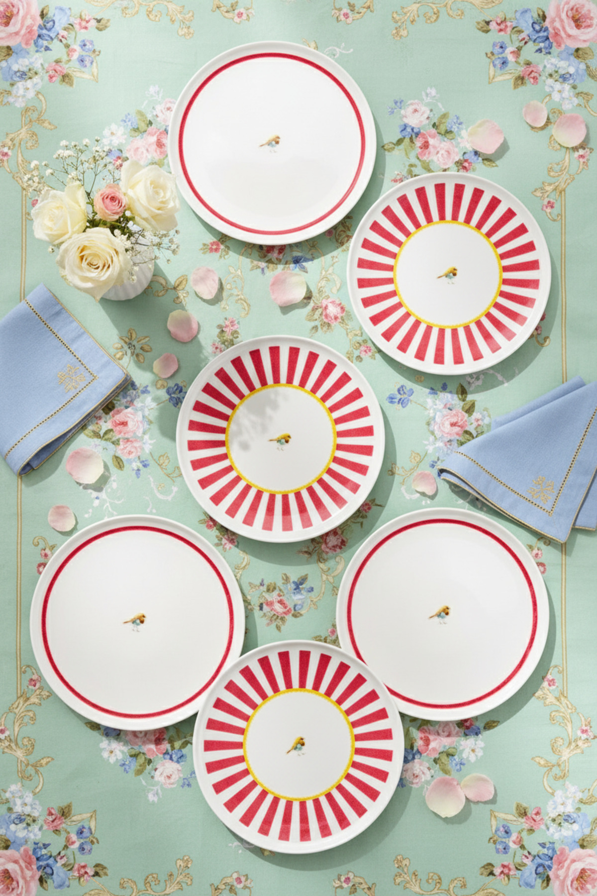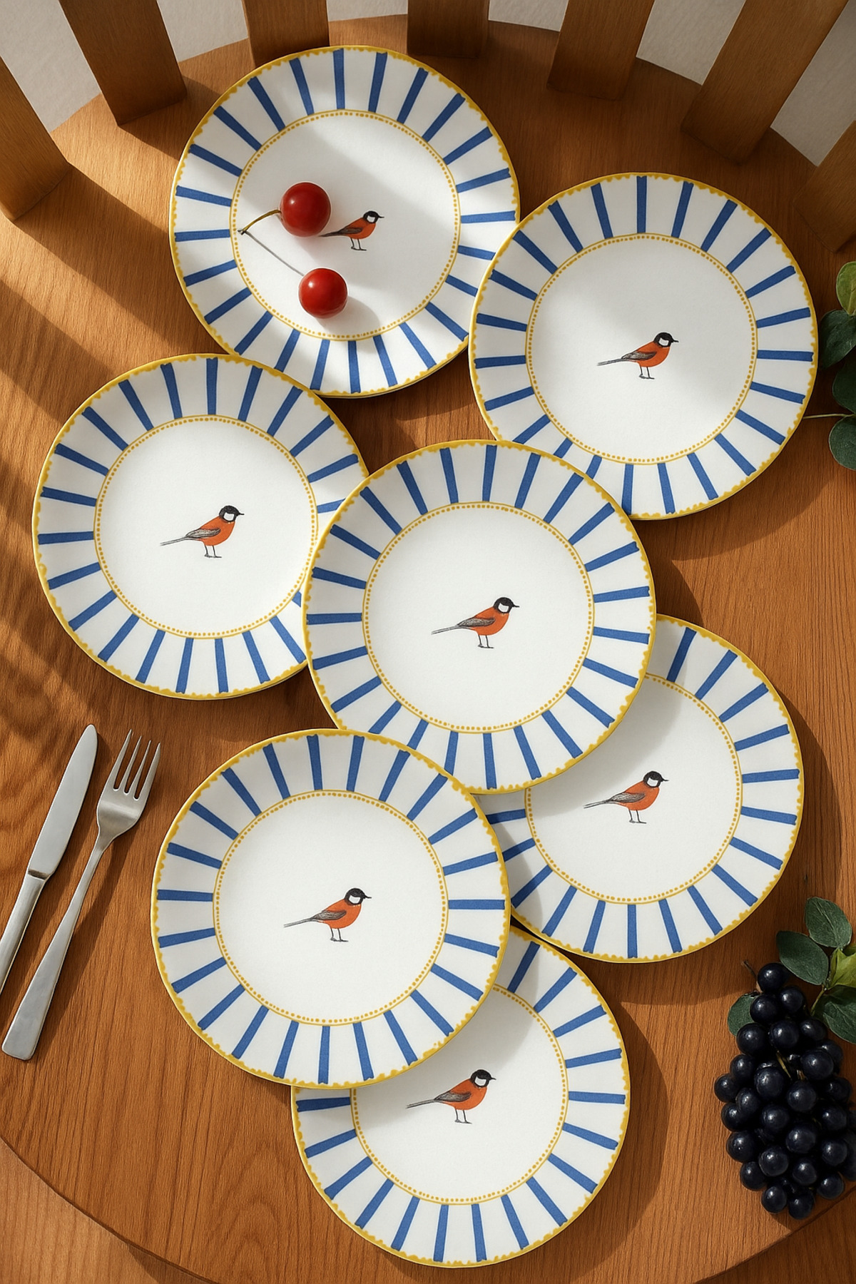 6lı Pasta Servis Tabağı Seti - Kuş Desenli Çizgili Kek Tatlı Kurabiye Davet Sunum Tabak Takımı -17cm 6lı Pasta Servis Tabağı Seti - Kuş Desenli Çizgili Kek Tatlı Kurabiye Davet Sunum Tabak Takımı -17cm İL0636 تک سایز