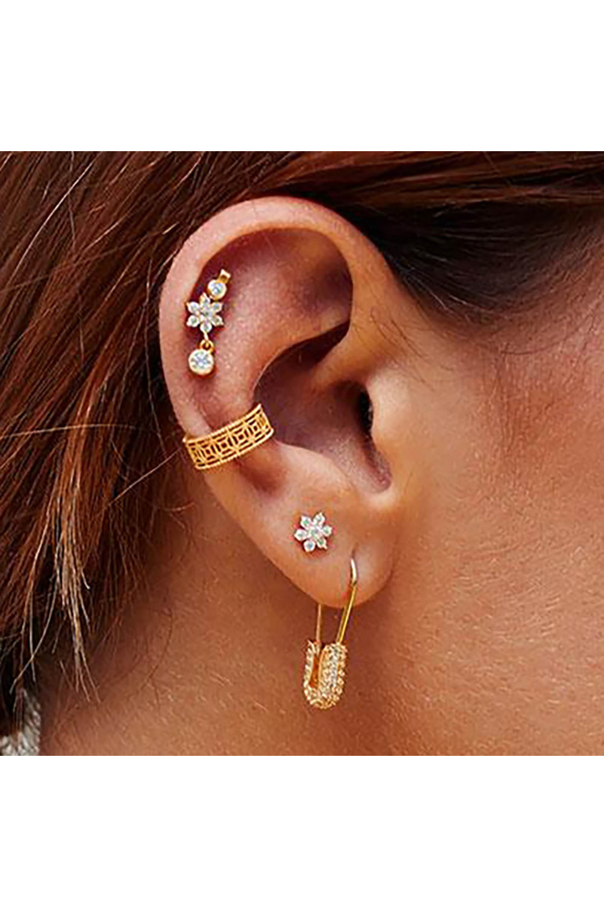 Zirkon Taşlı"Çengelli İğne"Küpe-31233-G-W Zirkon Taşlı"Çengelli İğne"Küpe-31233-G-W تک سایز