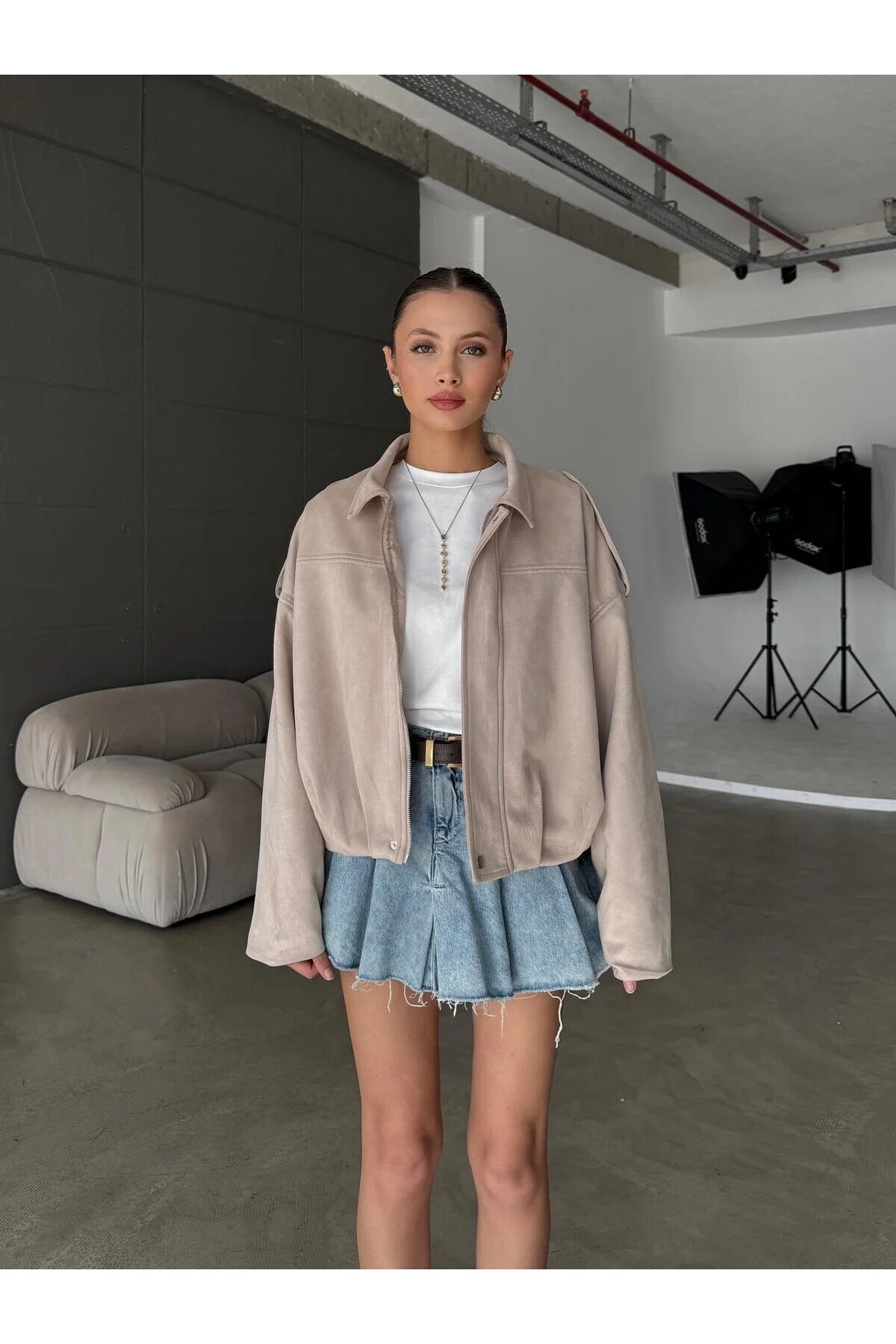 Oversize Bomber Soft Süet Ceket Oversize Bomber Soft Süet Ceket 225654202 L