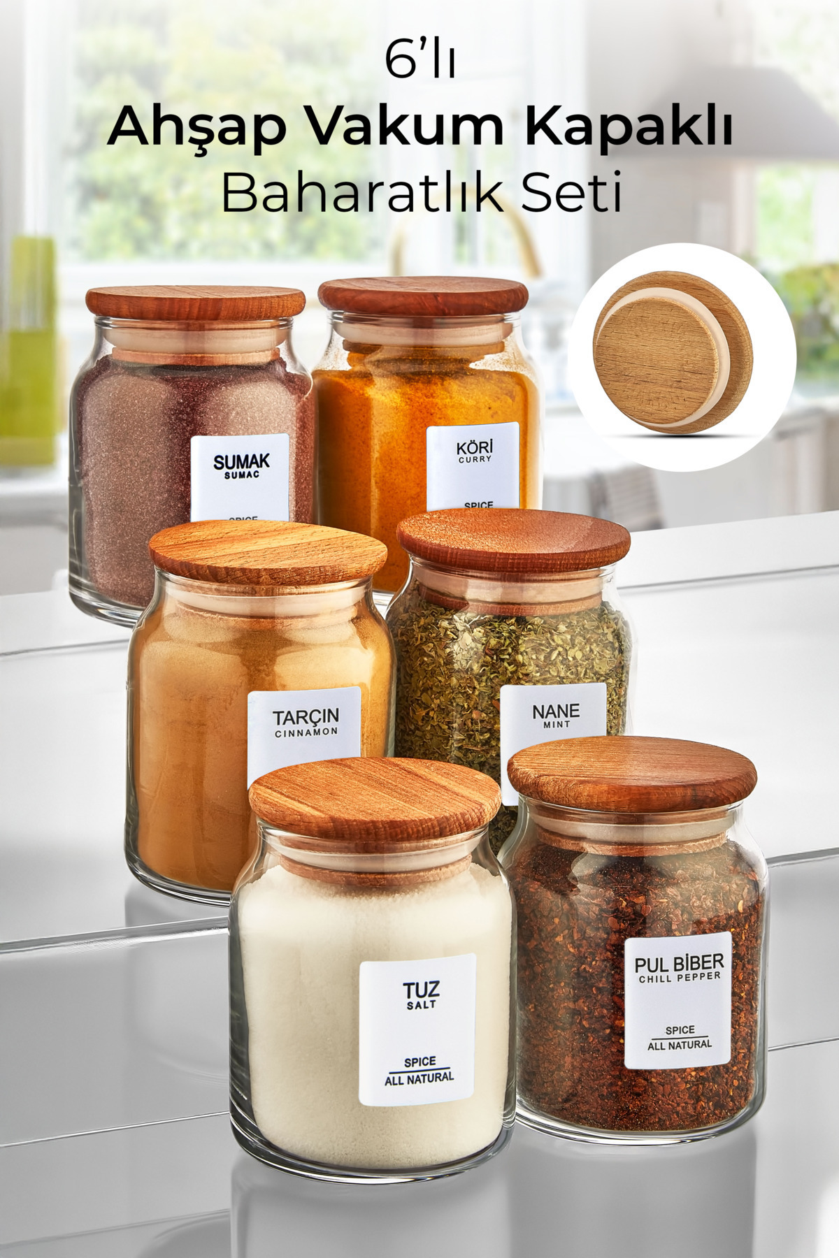 6'lı Bambu Kaşıklı Bambu Kapaklı Borasilikat cam Baharatlık Takımı 6'lı Bambu Kaşıklı Bambu Kapaklı Borasilikat cam Baharatlık Takımı MCH0011460 تک سایز