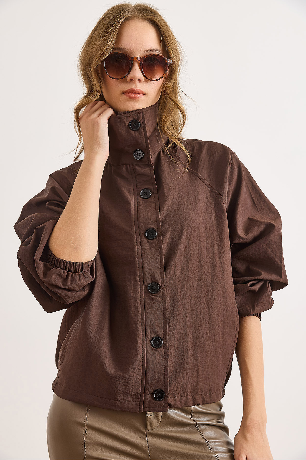 Kadın Kahverengi Altı Büzgülü Cepli Düğme ve Fermuar Kapamalı Ceket CKT-19000477 Kadın Kahverengi Altı Büzgülü Cepli Düğme ve Fermuar Kapamalı Ceket CKT-19000477 L