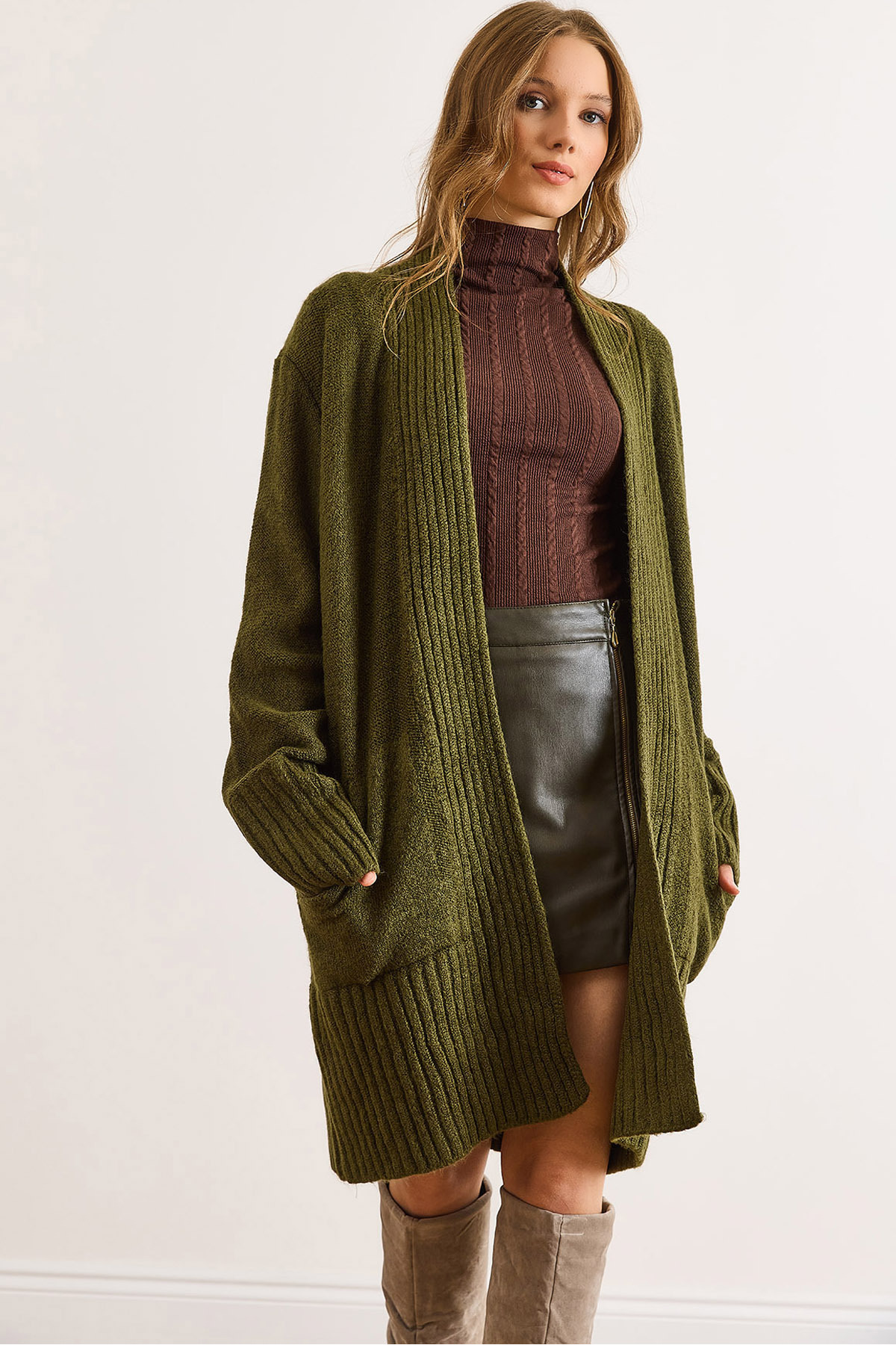 Kadın Yağ Yeşili Cepli Yaka Detaylı Yumuşak Dokulu Triko Hırka HRK-19000322 Kadın Yağ Yeşili Cepli Yaka Detaylı Yumuşak Dokulu Triko Hırka HRK-19000322 تک سایز