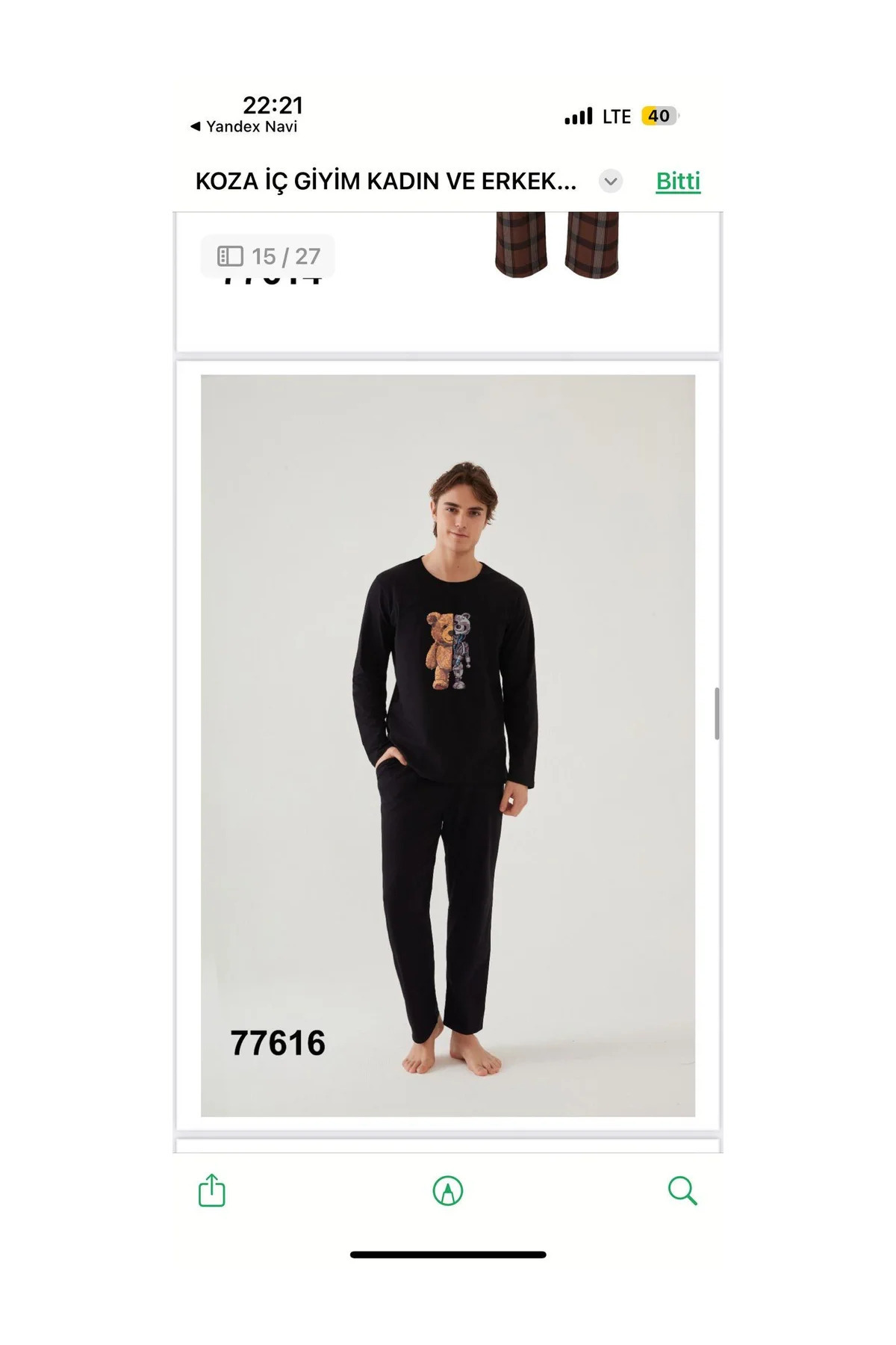 Erkek Uzun Kollu Panda Baskılı Pamuklu Pijama Takımı Erkek Uzun Kollu Panda Baskılı Pamuklu Pijama Takımı 3121070501 XL