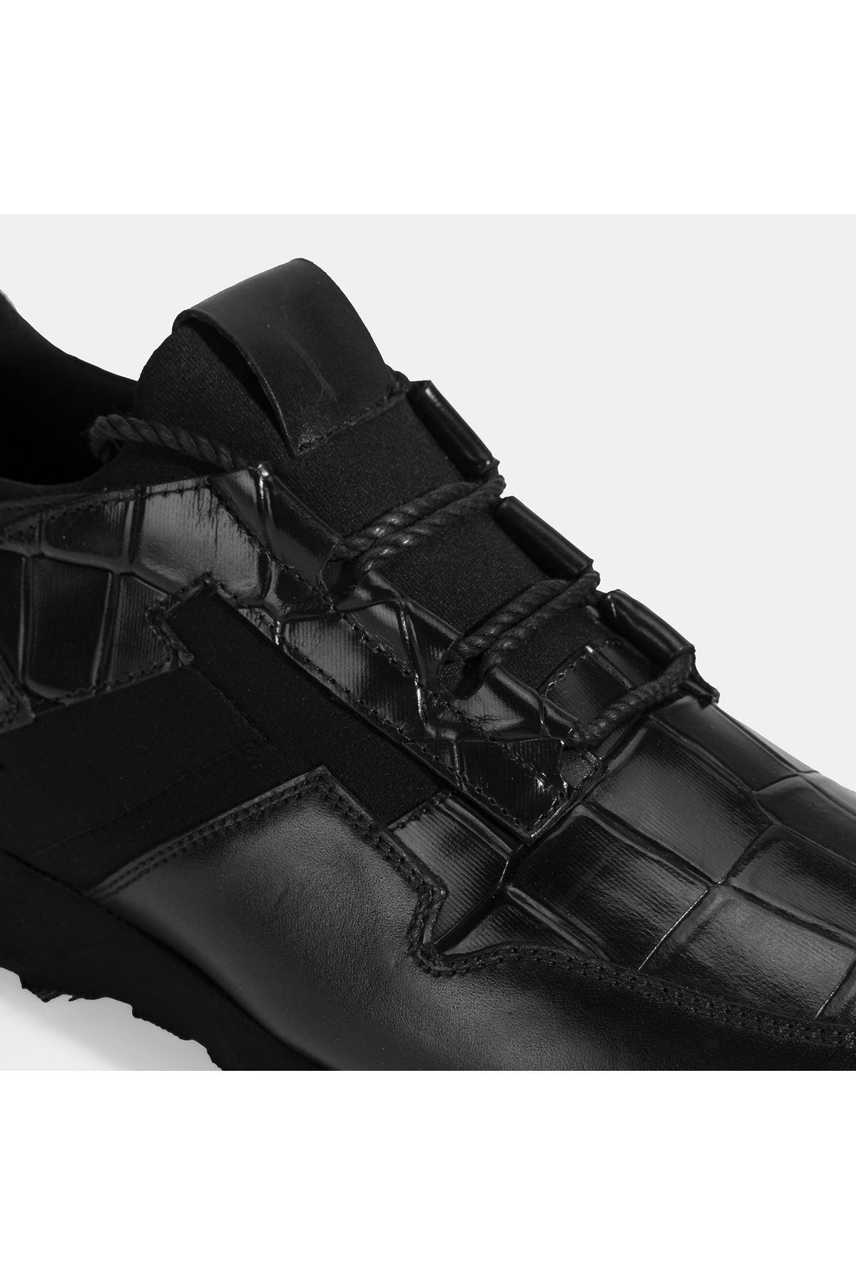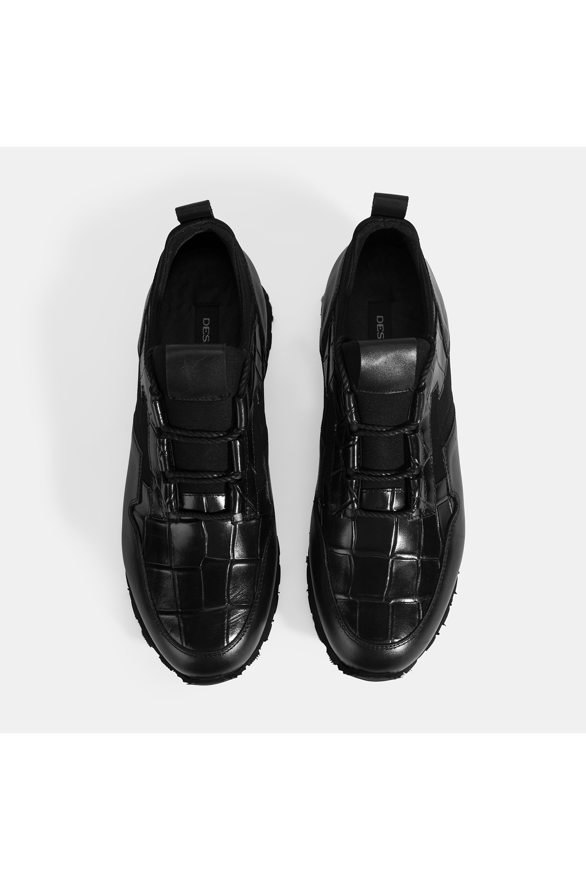 Erkek Siyah Kroko Baskılı Bağcıklı Deri Spor Ayakkabı Erkek Siyah Kroko Baskılı Bağcıklı Deri Spor Ayakkabı 2010055079 45