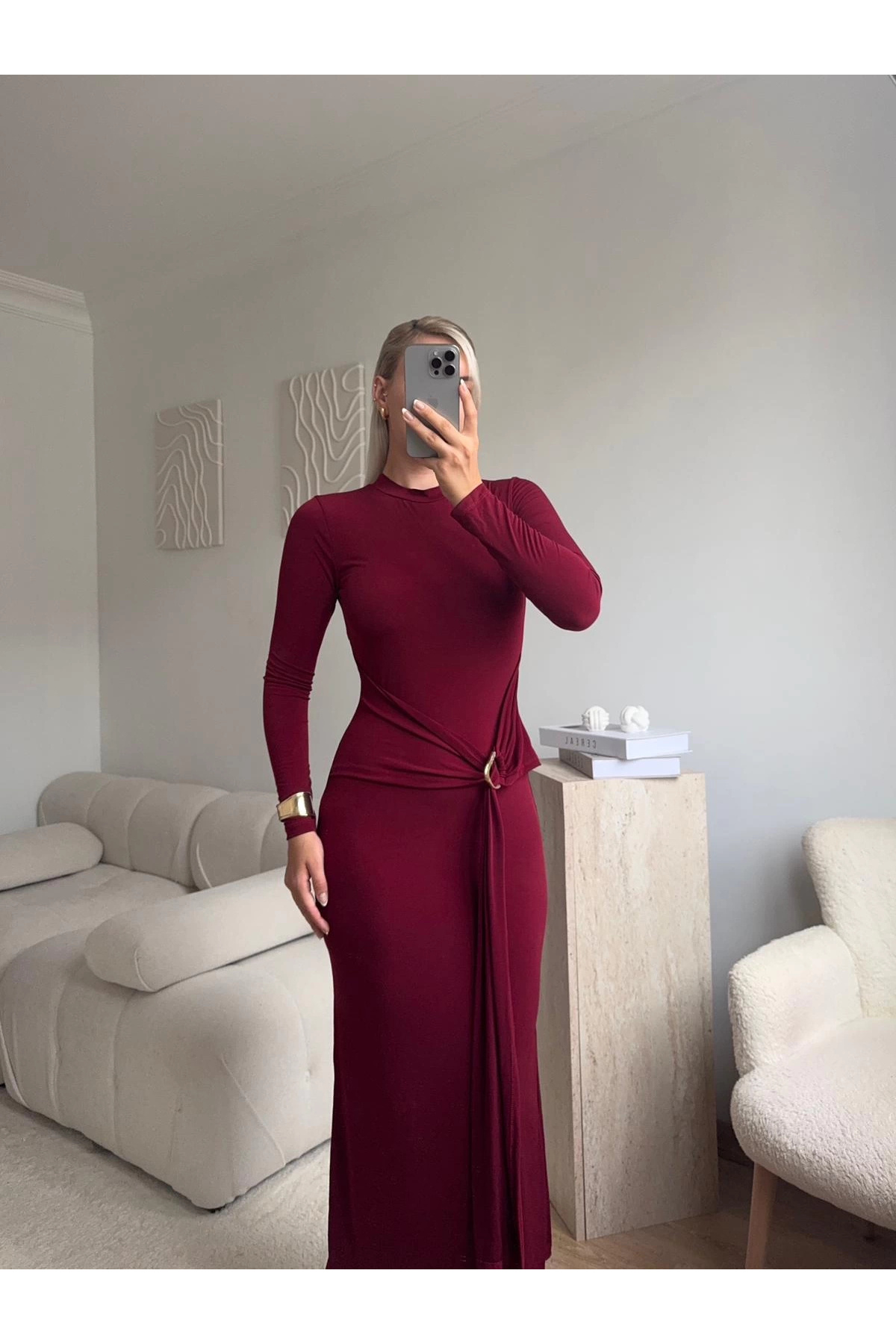 Kuşaklı Toka Detay Elbise - BORDO Kuşaklı Toka Detay Elbise - BORDO P3798S9741 L