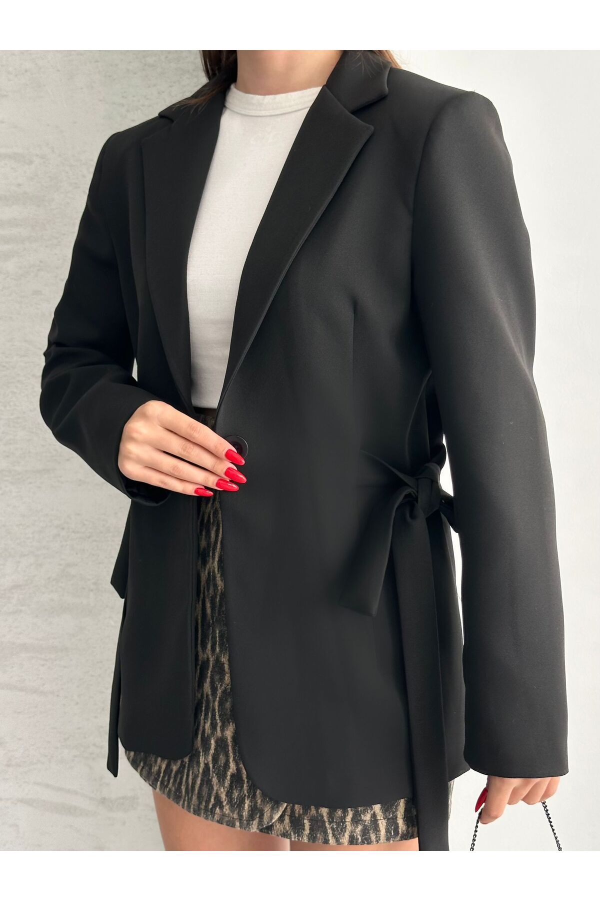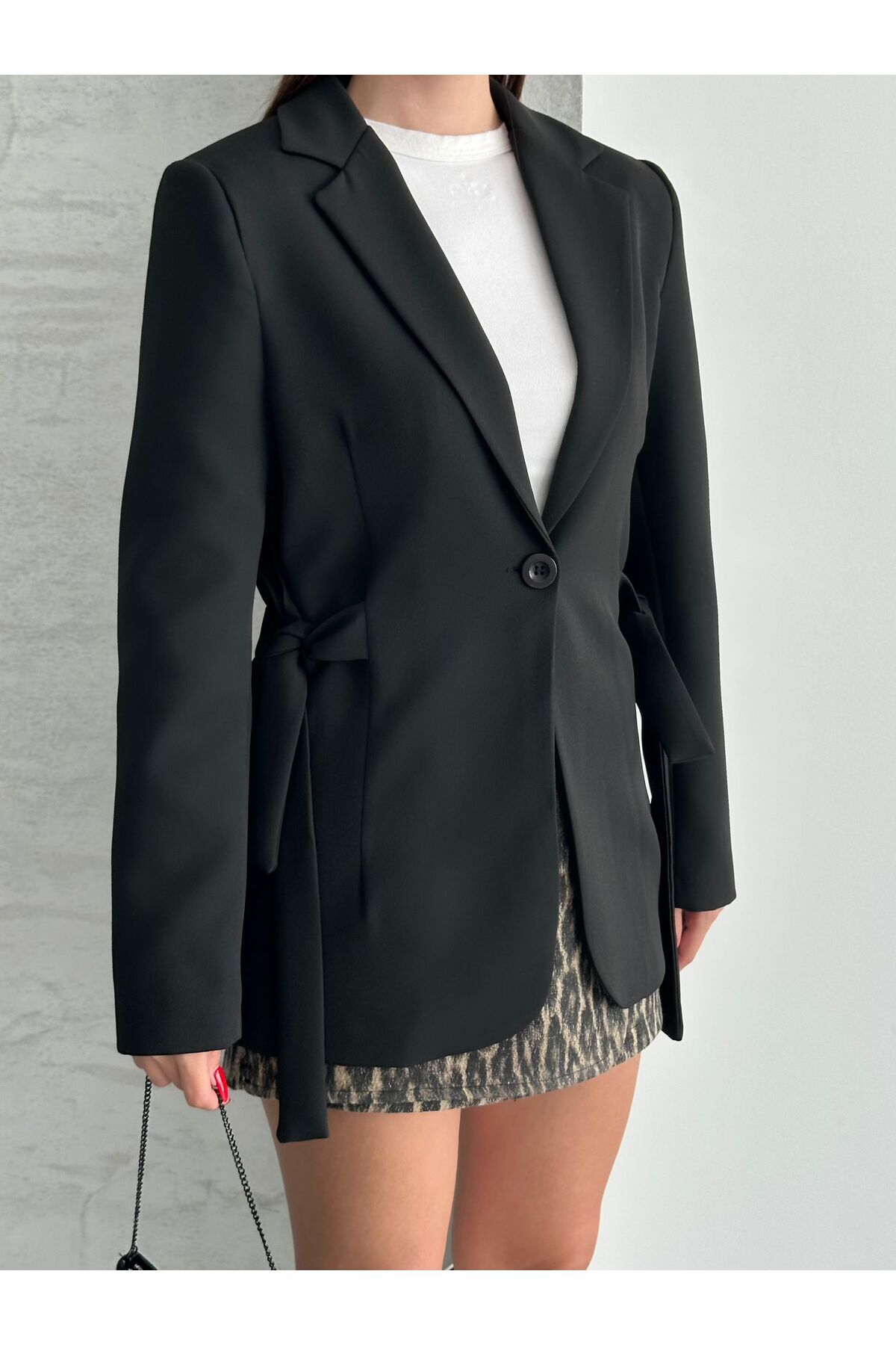 Kadın Dabıl Kumaş Yandan Bağlama Detaylı Tek Düğmeli Blazer Ceket Kadın Dabıl Kumaş Yandan Bağlama Detaylı Tek Düğmeli Blazer Ceket ParlaYandanBağlamalıBlazerCeket XL