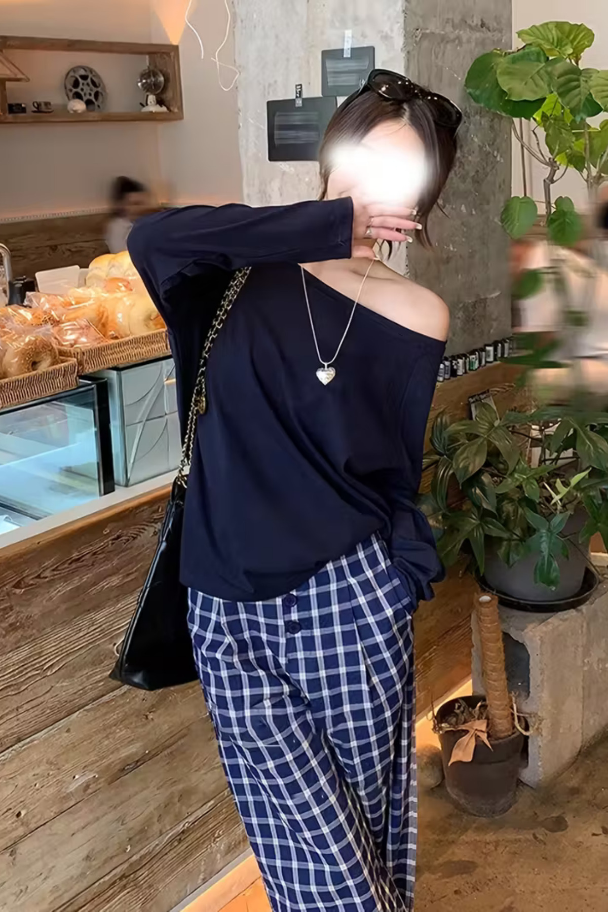 Beyaz Lacivert 2 Li Paket Kadın Düşük Omuz Kayık Yaka Oversize Uzun Kollu T-Shirt Beyaz Lacivert 2 Li Paket Kadın Düşük Omuz Kayık Yaka Oversize Uzun Kollu T-Shirt UZNKDNTS025 L/XL
