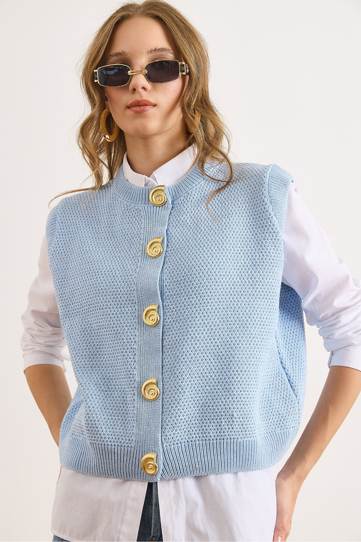 Kadın Bebe Mavi Spiral Çıtçıt Detaylı Sıkı Örgü Kalın Triko Yelek YLK-19000091 Kadın Bebe Mavi Spiral Çıtçıt Detaylı Sıkı Örgü Kalın Triko Yelek YLK-19000091 تک سایز