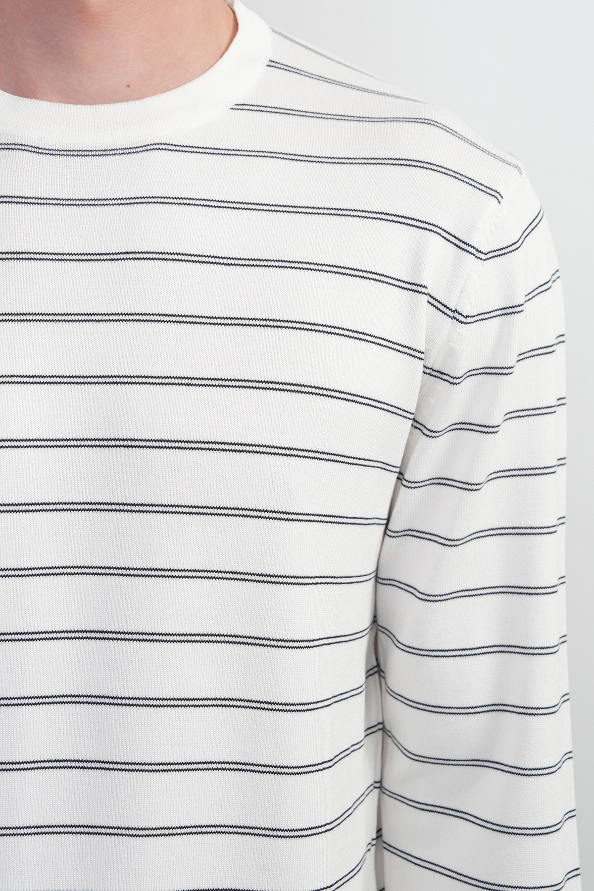 Erkek Çizgili Bisiklet Yaka Salaş Beyaz Sweatshirt Erkek Çizgili Bisiklet Yaka Salaş Beyaz Sweatshirt 4456 2XL