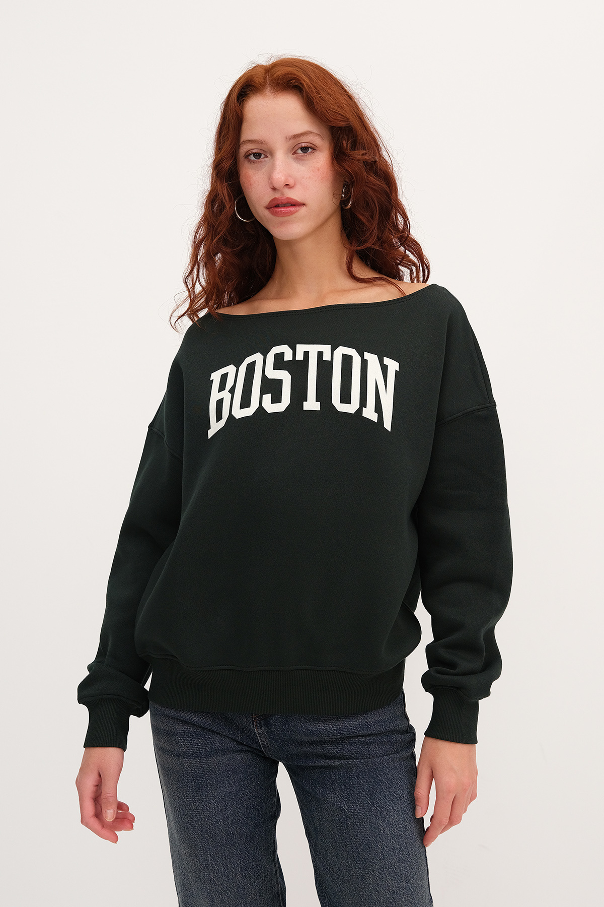 Boston Yazılı Şardonlu Sweatshirt S1835 Boston Yazılı Şardonlu Sweatshirt S1835 ADX-00035636 L