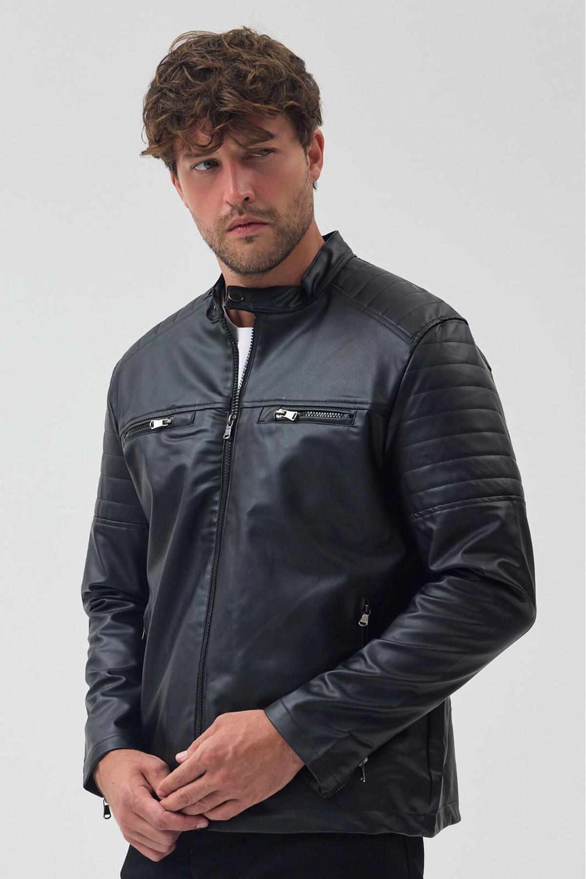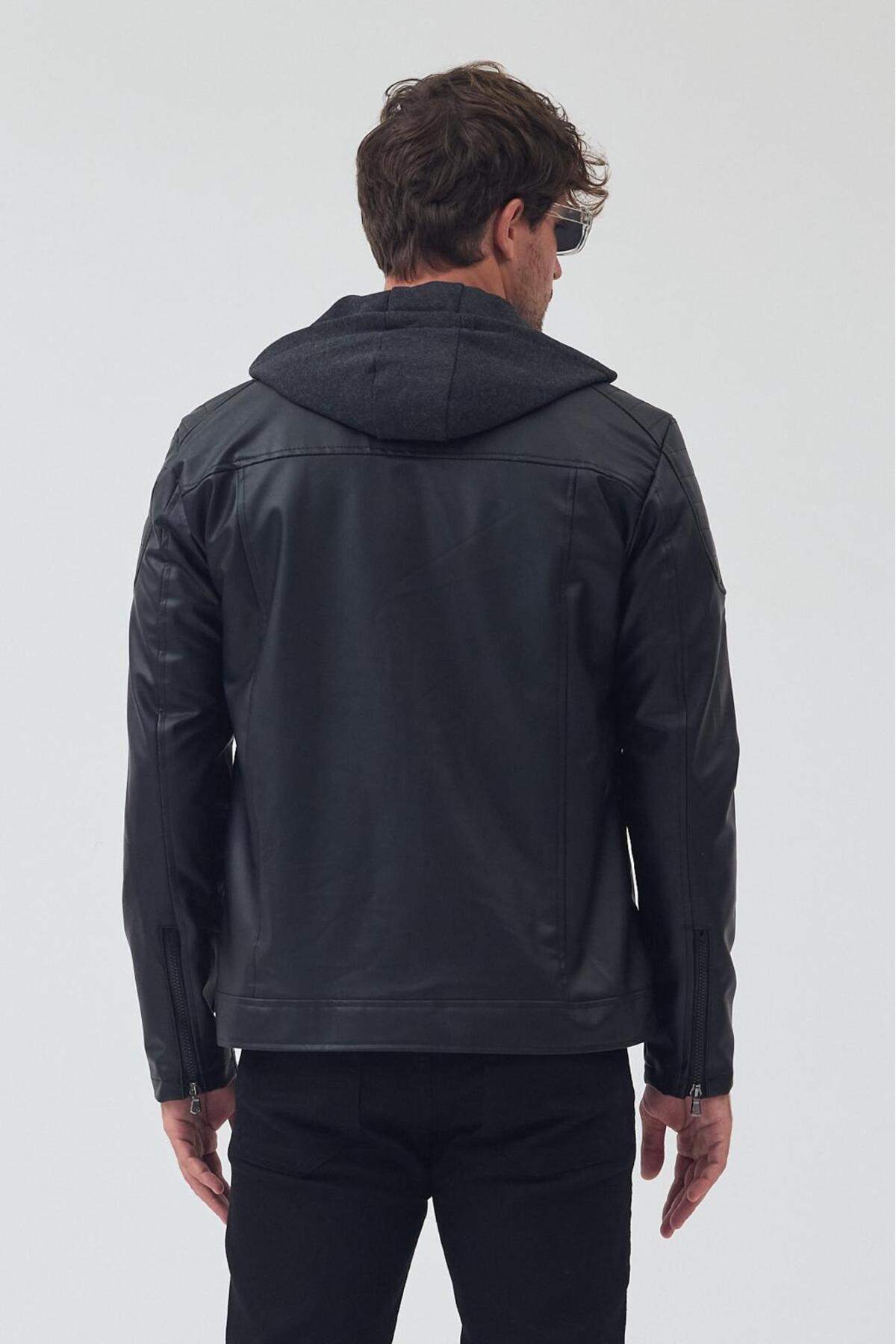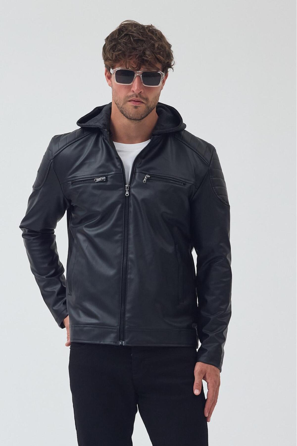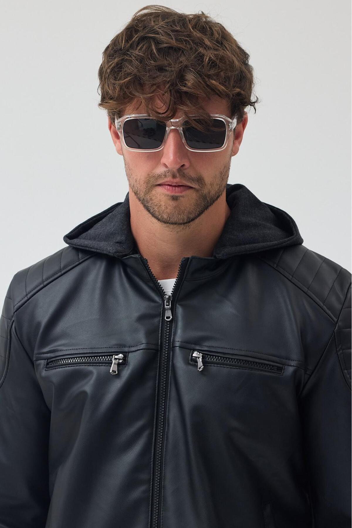 Kapüşonlu Dar Kesim Erkek Siyah Deri Ceket Kapüşonlu Dar Kesim Erkek Siyah Deri Ceket Tuçi-1006 2XL