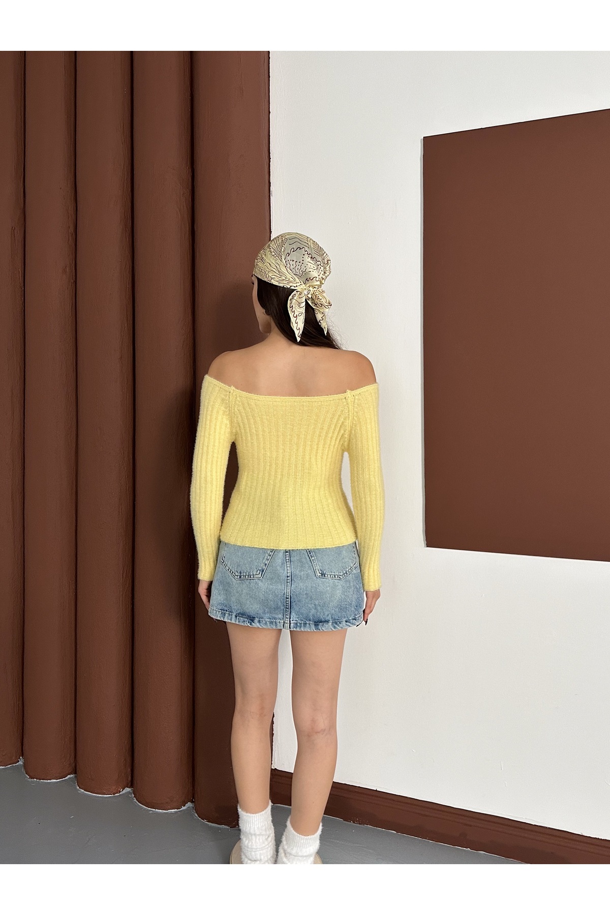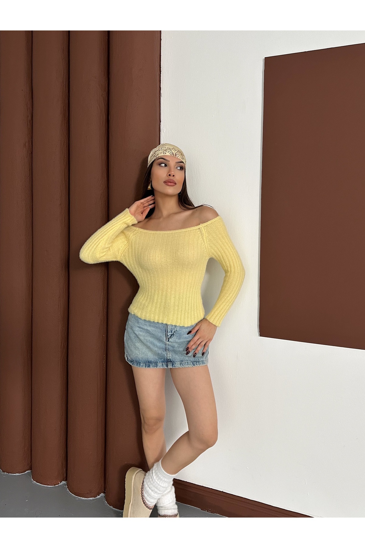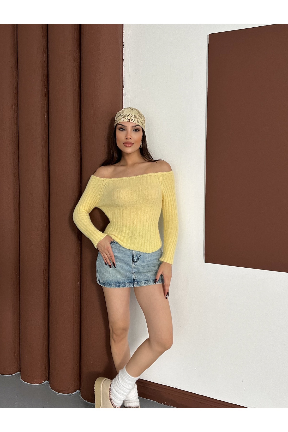Kadın Sarı Madonna Yaka Yumoş Kazak Kadın Sarı Madonna Yaka Yumoş Kazak LC2061 Standart