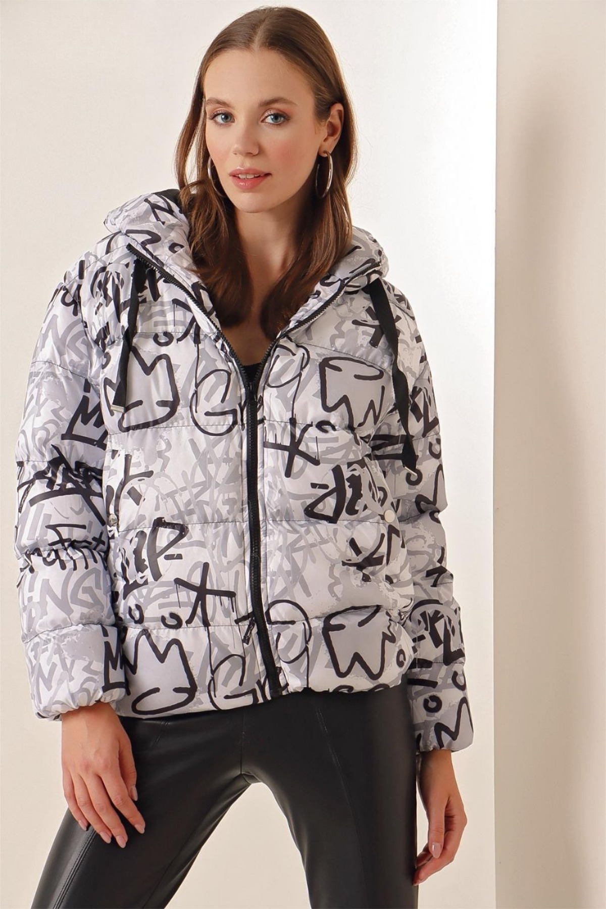 Kadın Gri Desenli Şişme Mont Kadın Gri Desenli Şişme Mont RND202538 42