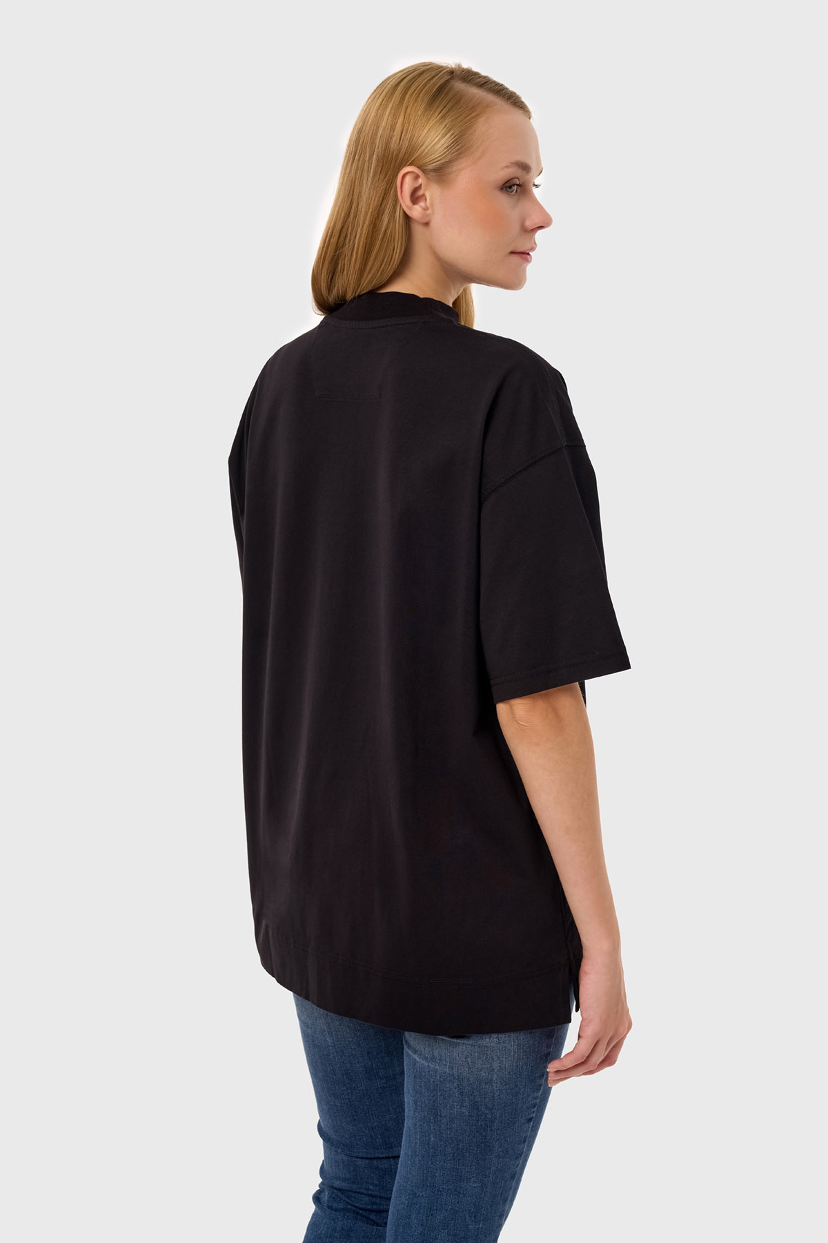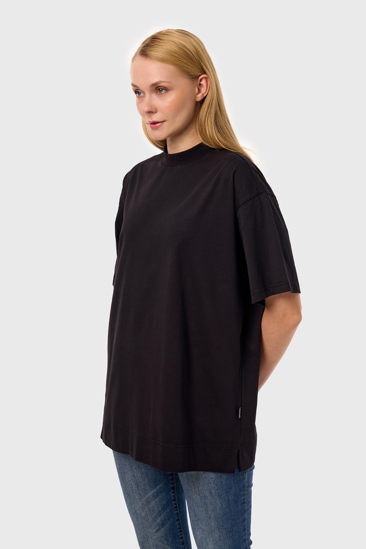Luna - Siyah Kadın Oversize Dik Yaka Basic T-shirt Luna - Siyah Kadın Oversize Dik Yaka Basic T-shirt qpq1A0400035 XL/2XL