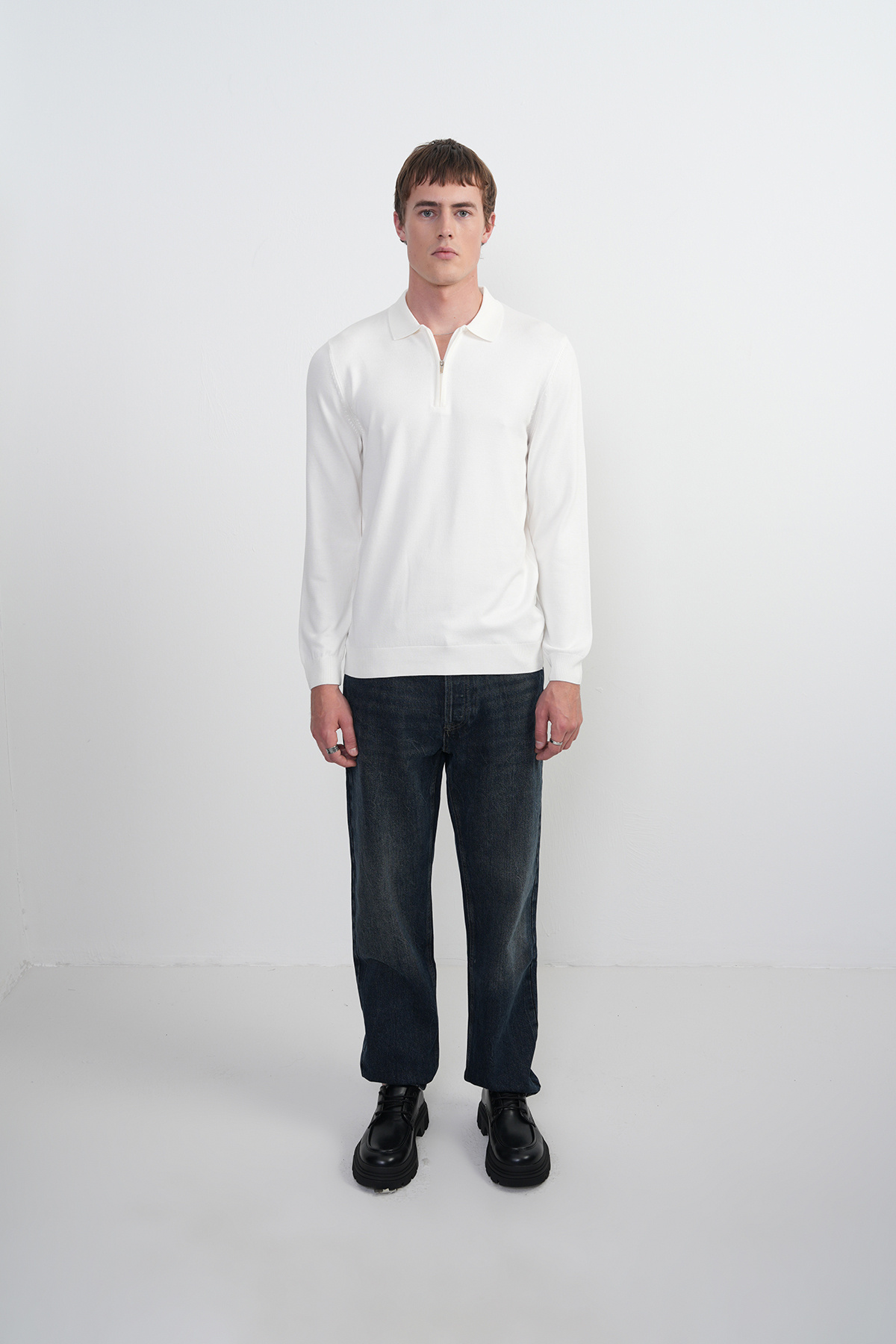 Erkek Yarım Fermuar Uzun Kol Beyaz Polo Yaka Tişört Erkek Yarım Fermuar Uzun Kol Beyaz Polo Yaka Tişört 4451 2XL